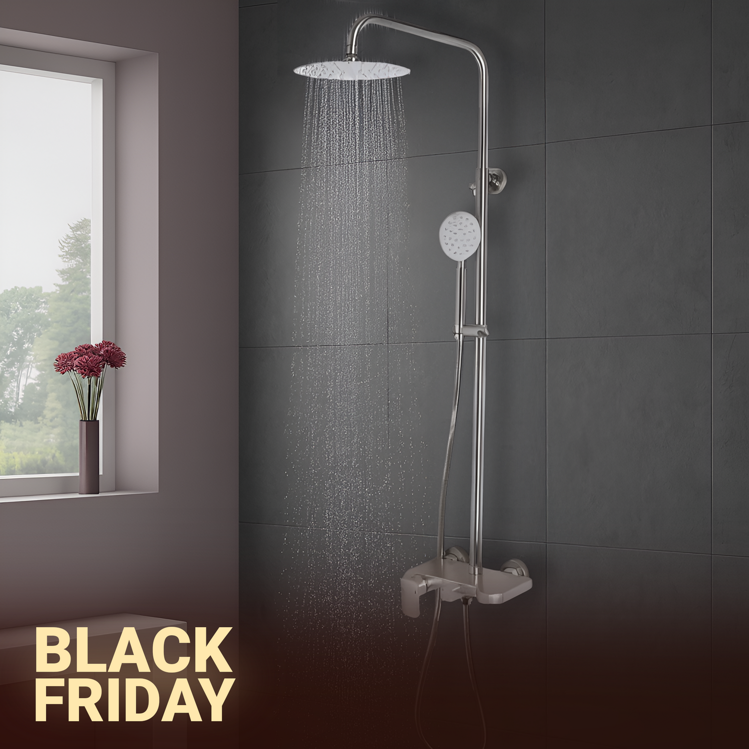 Kolumna prysznicowa, mosiądz sanitarny, czarny, 9960H