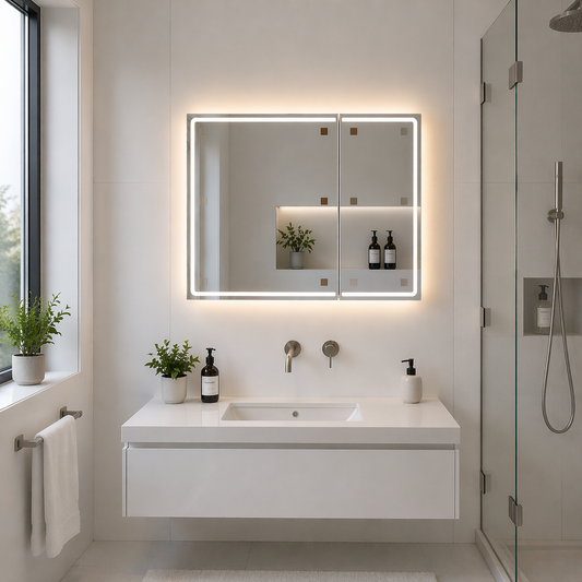 Oglinzile LED cu dulap iti elibereaza blatul, ofera lumina optima si aduc un aer modern spatiului. Sunt o investitie practica si estetica, perfecta pentru cei care vor ordine si confort fara efort.
