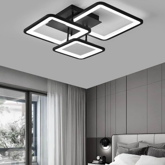 Żyrandol LED z pilotem ZOE 64W, 3 kwadraty, światło zimne/ciepłe/neutralne, ściemnialny, czarny