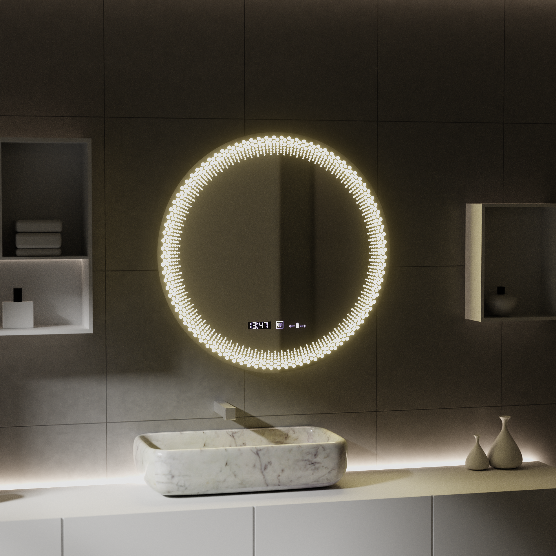 Wprowadź odrobinę nowoczesnej elegancji i zaawansowanej technologii do swojej łazienki dzięki okrągłemu lustru LED Stellaire Touch. Idealny okrągły kształt o średnicy 60 cm tworzy harmonijny punkt centralny, a inteligentne funkcje zapewniają komfort i kontrolę.