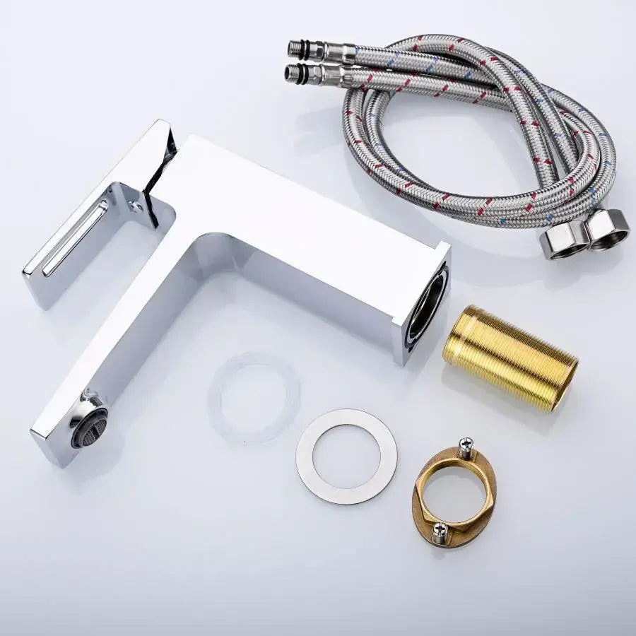 Bateria umywalkowa, wylewka obrotowa, długość 18 cm, głowica ceramiczna, chrom, przyłącze w zestawie