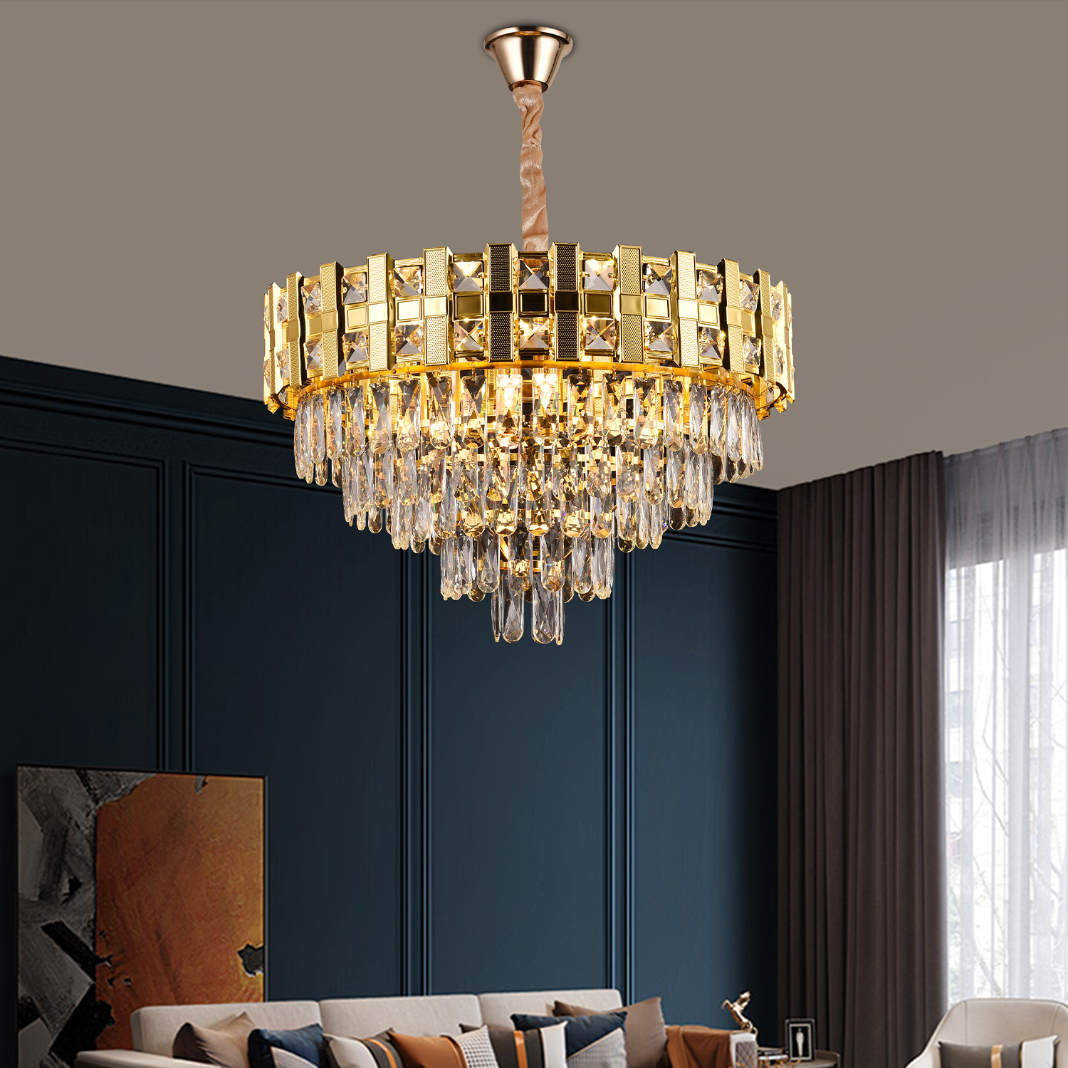Żyrandol kryształowy BRAN Mango 8xE14, średnica 60 cm, błyszczące złoto, regulowana wysokość