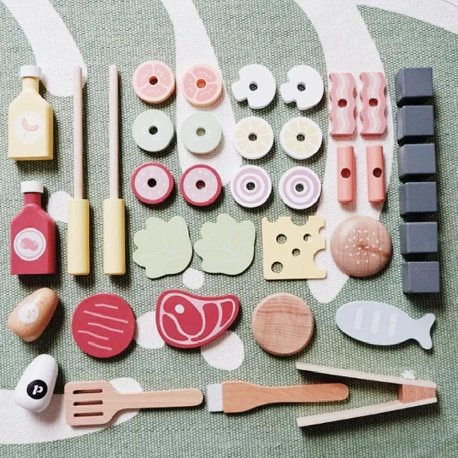 Drewniana zabawka do grilla, 52 elementy, wielokolorowa, drewno