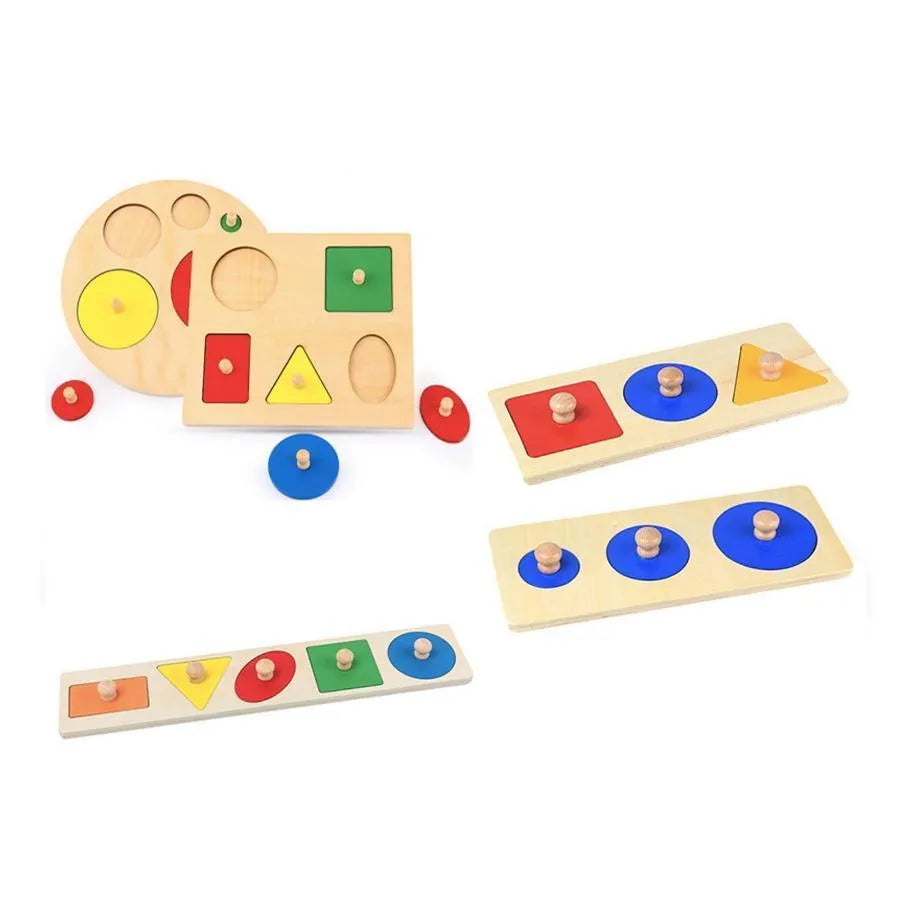 Wielokolorowa gra planszowa z figurami geometrycznymi, 6 elementów, drewno