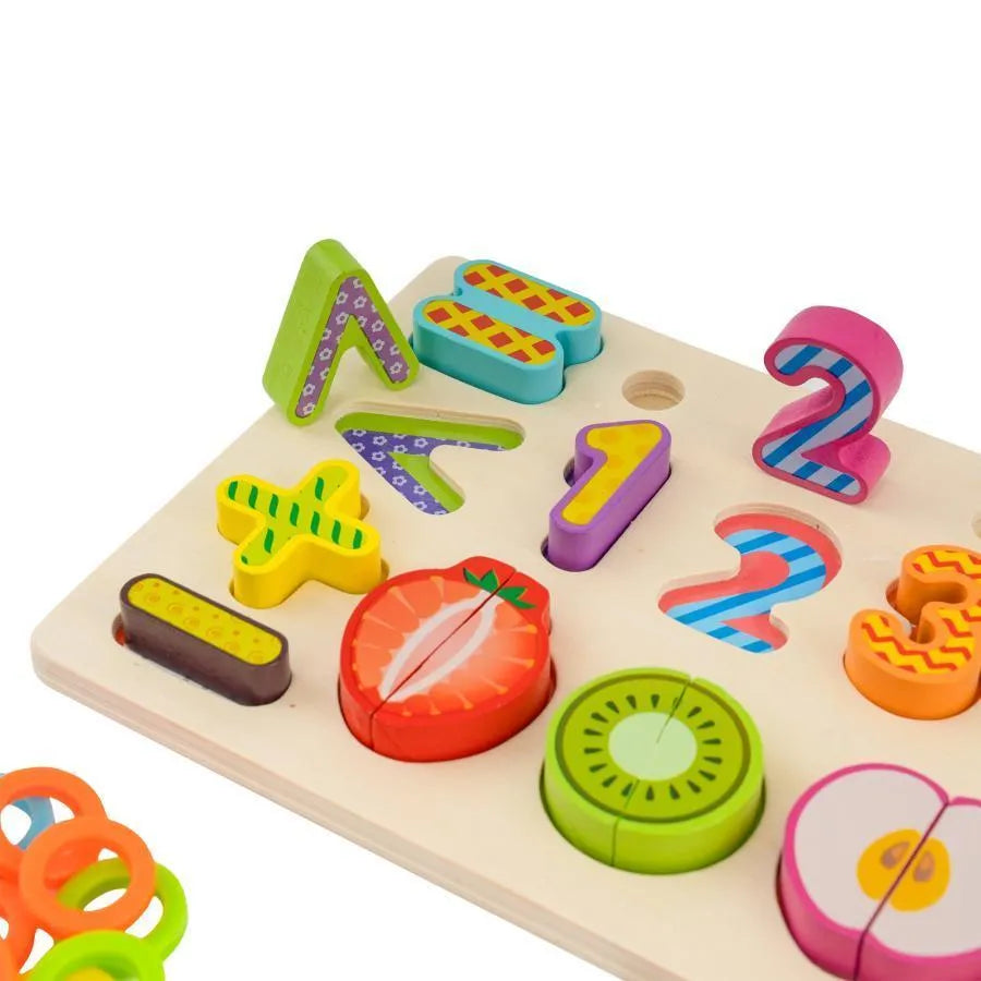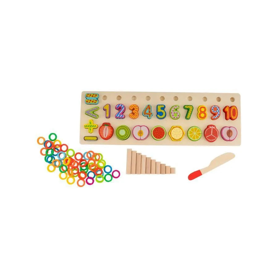 Kreatywna gra planszowa z owocami i liczbami, drewno i plastik
