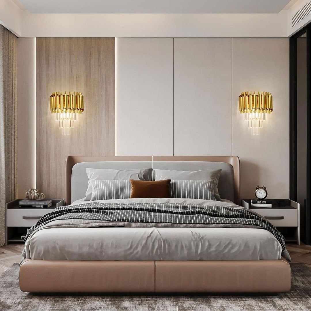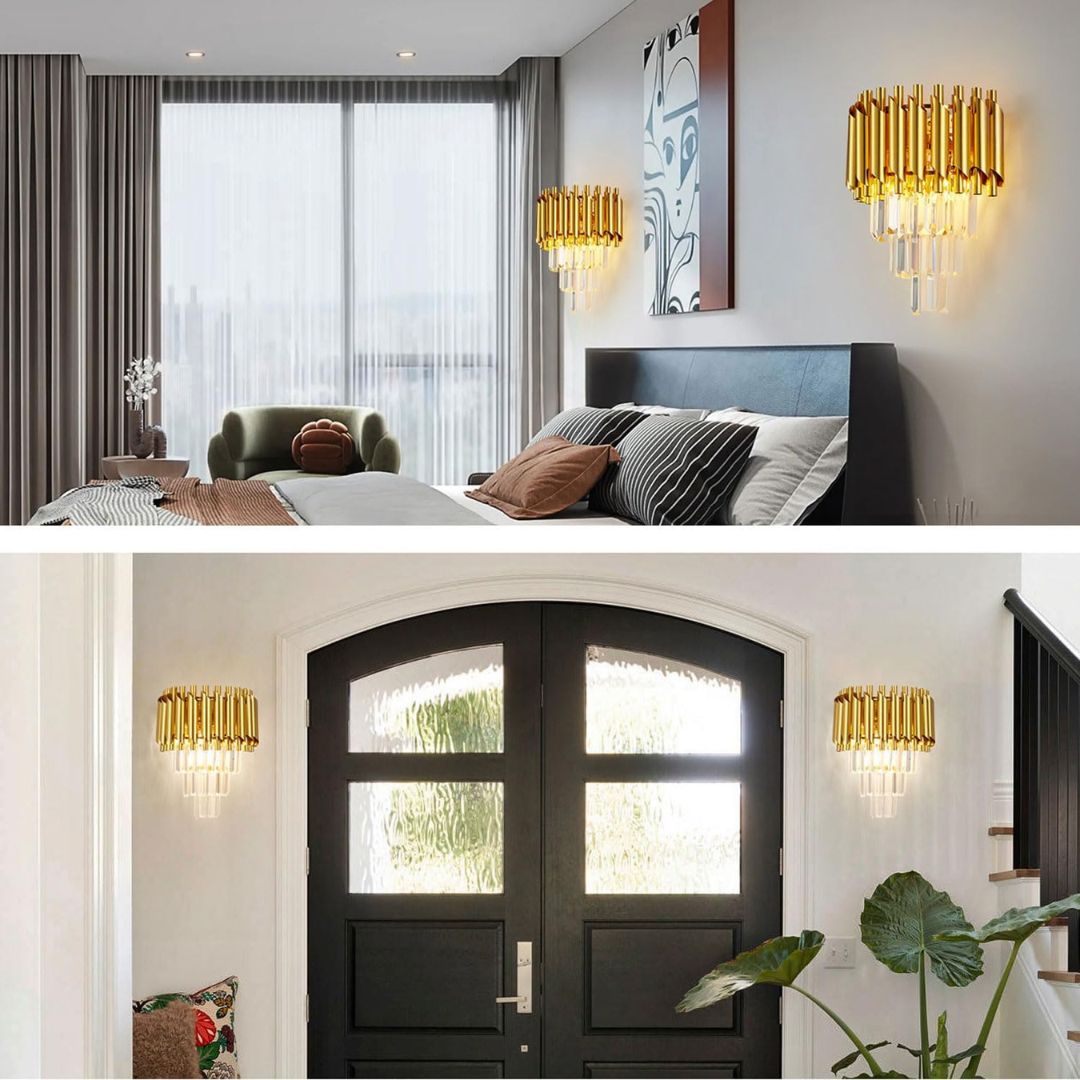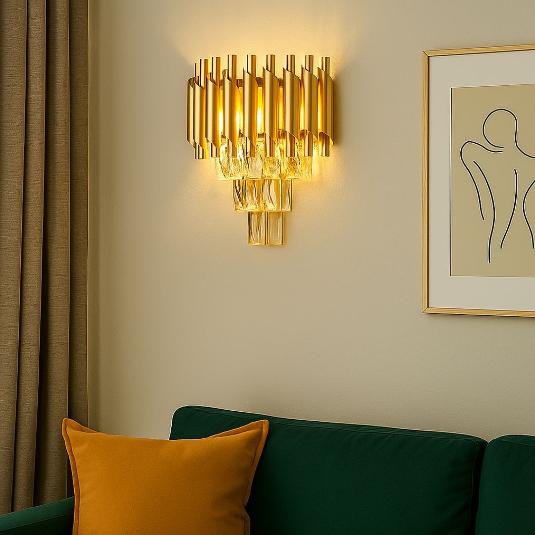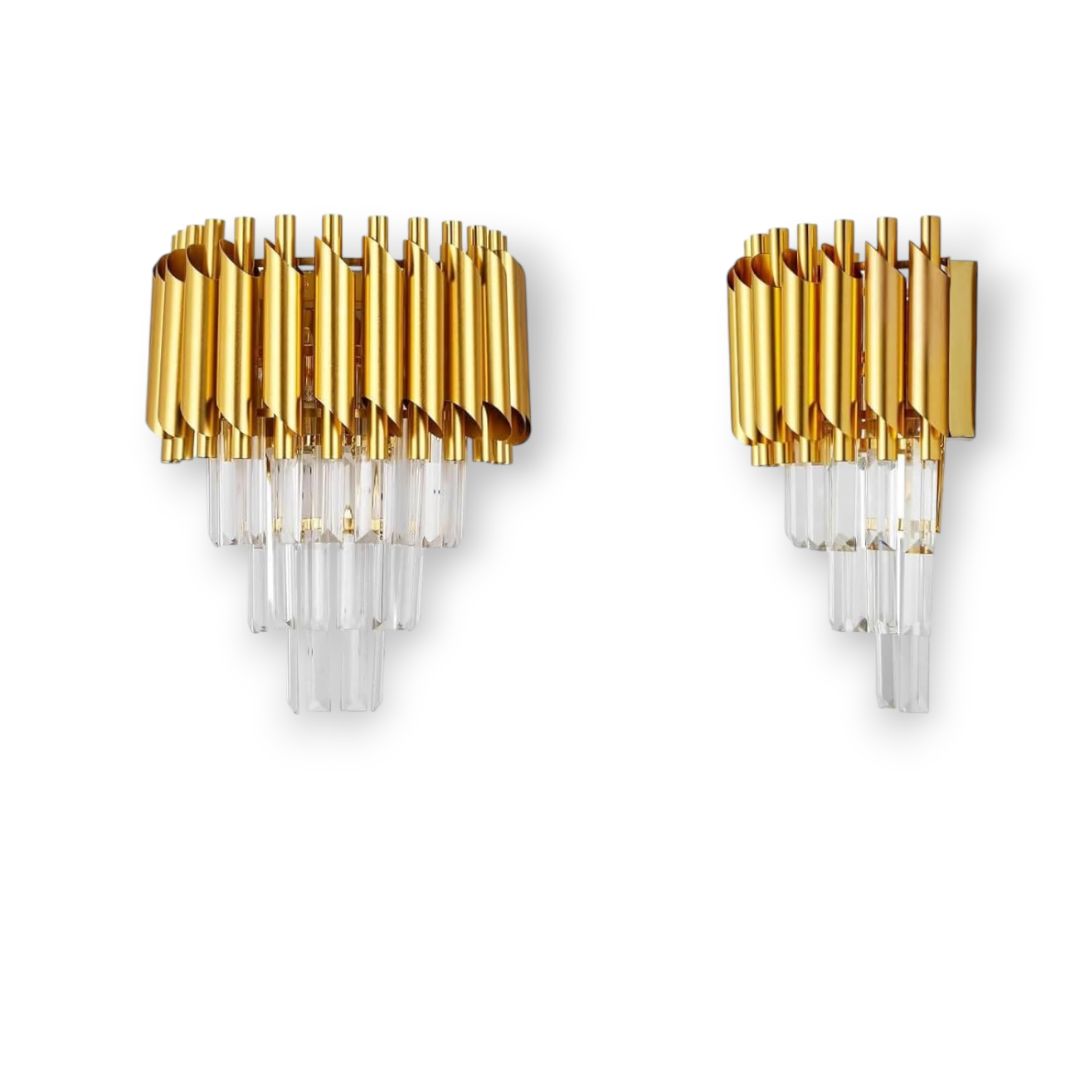 Dodaj wyjątkowy akcent wizualny dzięki kinkietowi Versailles Piccolo, wykonanemu ze złotego metalu i kryształów o szlifie kaskadowym. Montaż na ścianie zapewnia wyjątkowy efekt dekoracyjny, idealny do pomieszczeń takich jak sypialnia, salon, przedpokój, jadalnia czy kuchnia.✔ Działa z dwiema żarówkami E14, zasilanie sieciowe 220-230V