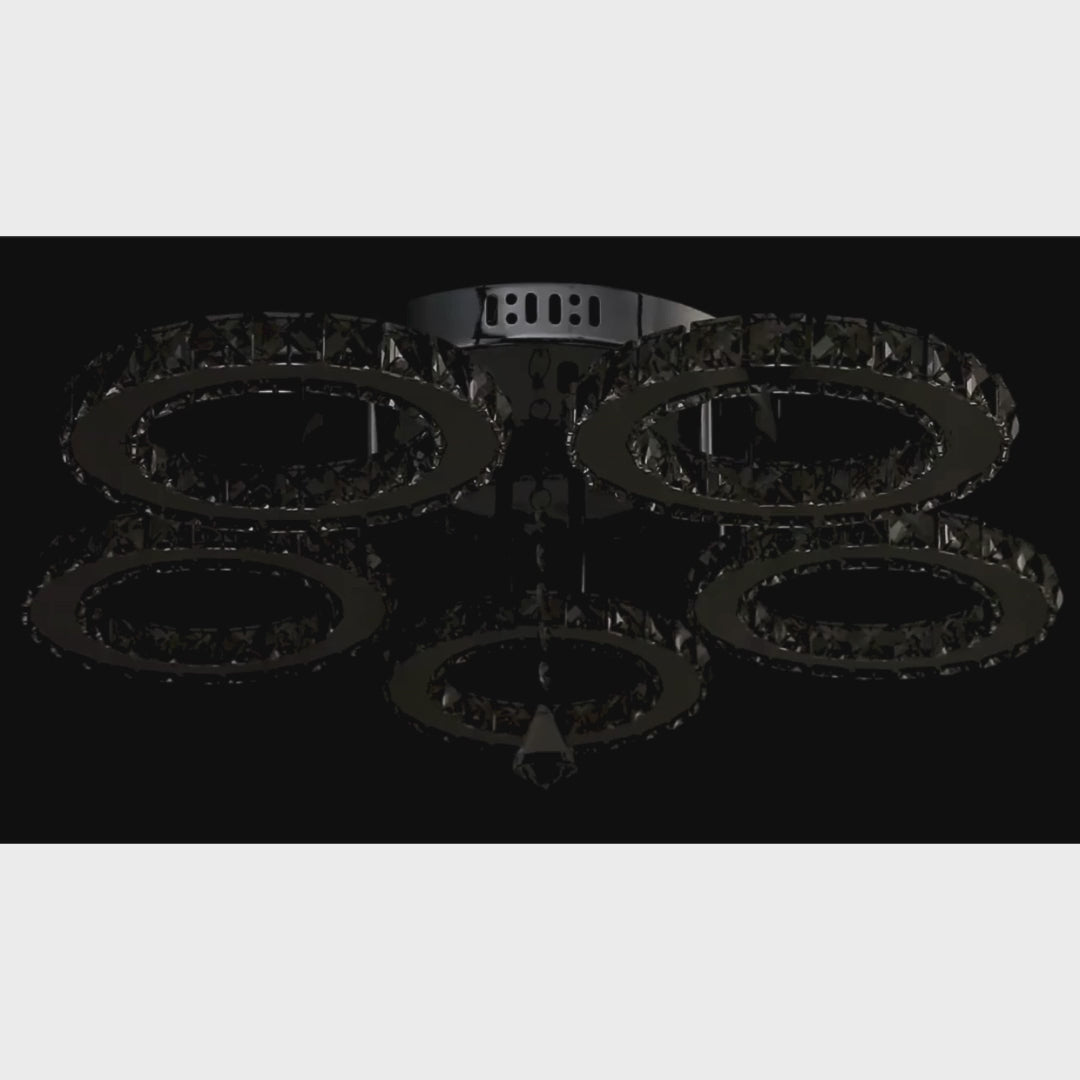 Żyrandol LED z pilotem i kryształem ALANUBIS 61W, 5 okręgów, zimne/ciepłe/neutralne światło, ściemnialny, błyszczący chrom