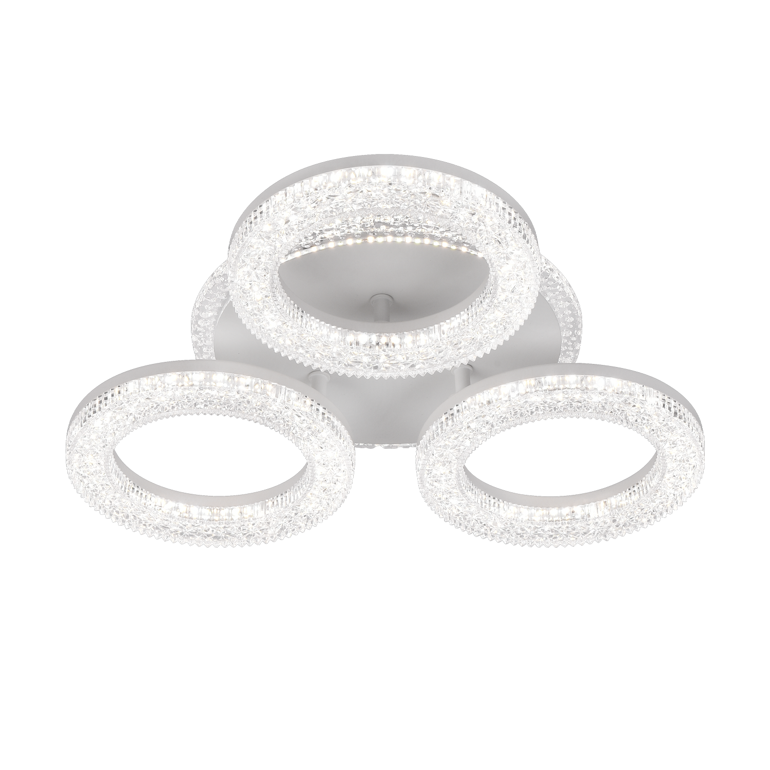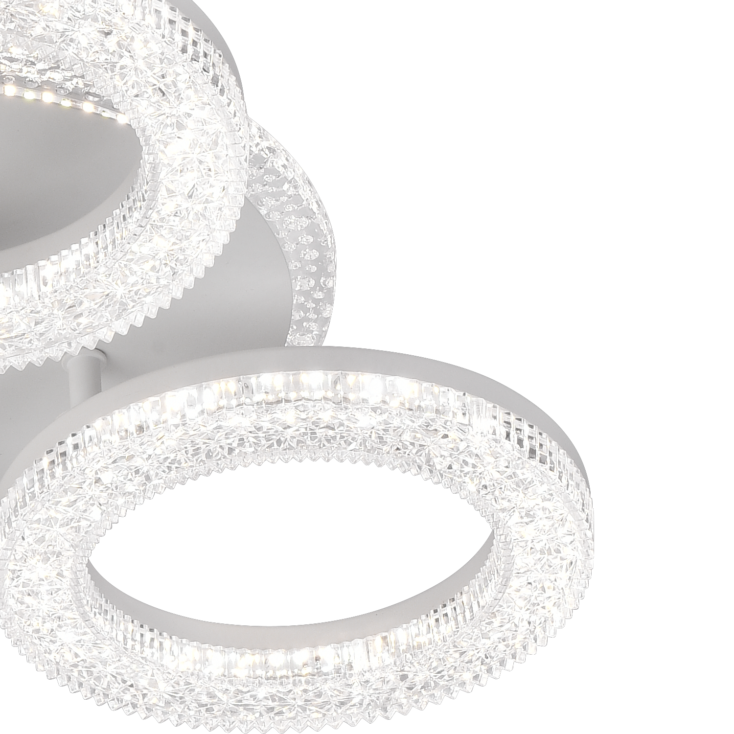 Żyrandol LED Singrid z pilotem, 50 W, 3000 K/4000 K/6000 K, ściemnialny, biały, kryształy, 3 kółka