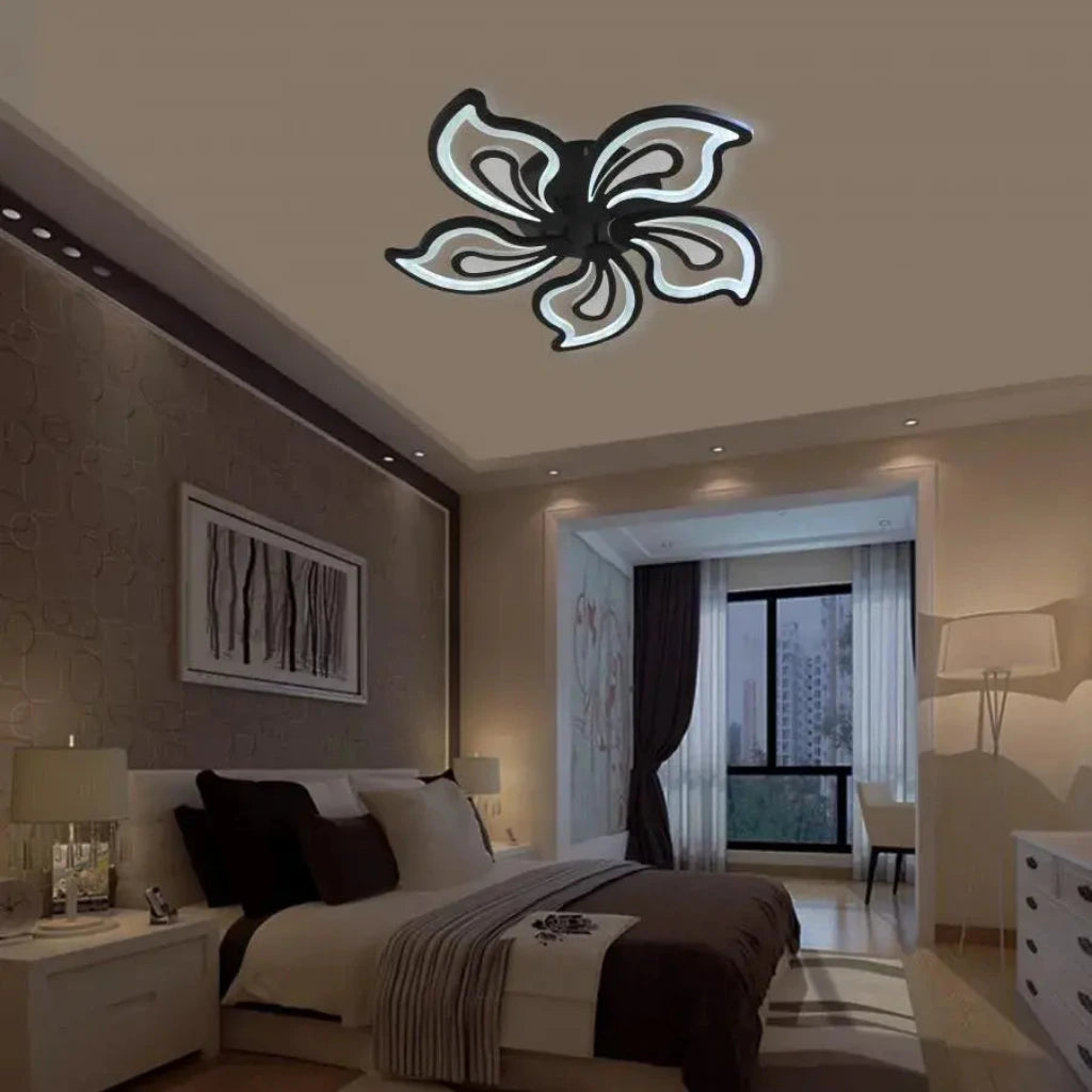 Pięć „płatków”, oświetlonych mocnymi diodami LED, tworzy wyrazisty efekt wizualny i zapewnia szeroki rozsył światła. Dołączony pilot zdalnego sterowania zapewnia pełną kontrolę nad nastrojem: możesz wybierać między chłodnym światłem (dla żywej atmosfery), ciepłym światłem (dla przytulnego komfortu) lub neutralnym światłem (dla optymalnego oświetlenia ogólnego), a funkcją ściemniania możesz regulować natężenie światła, idealnie dostosowując je do każdej okazji.