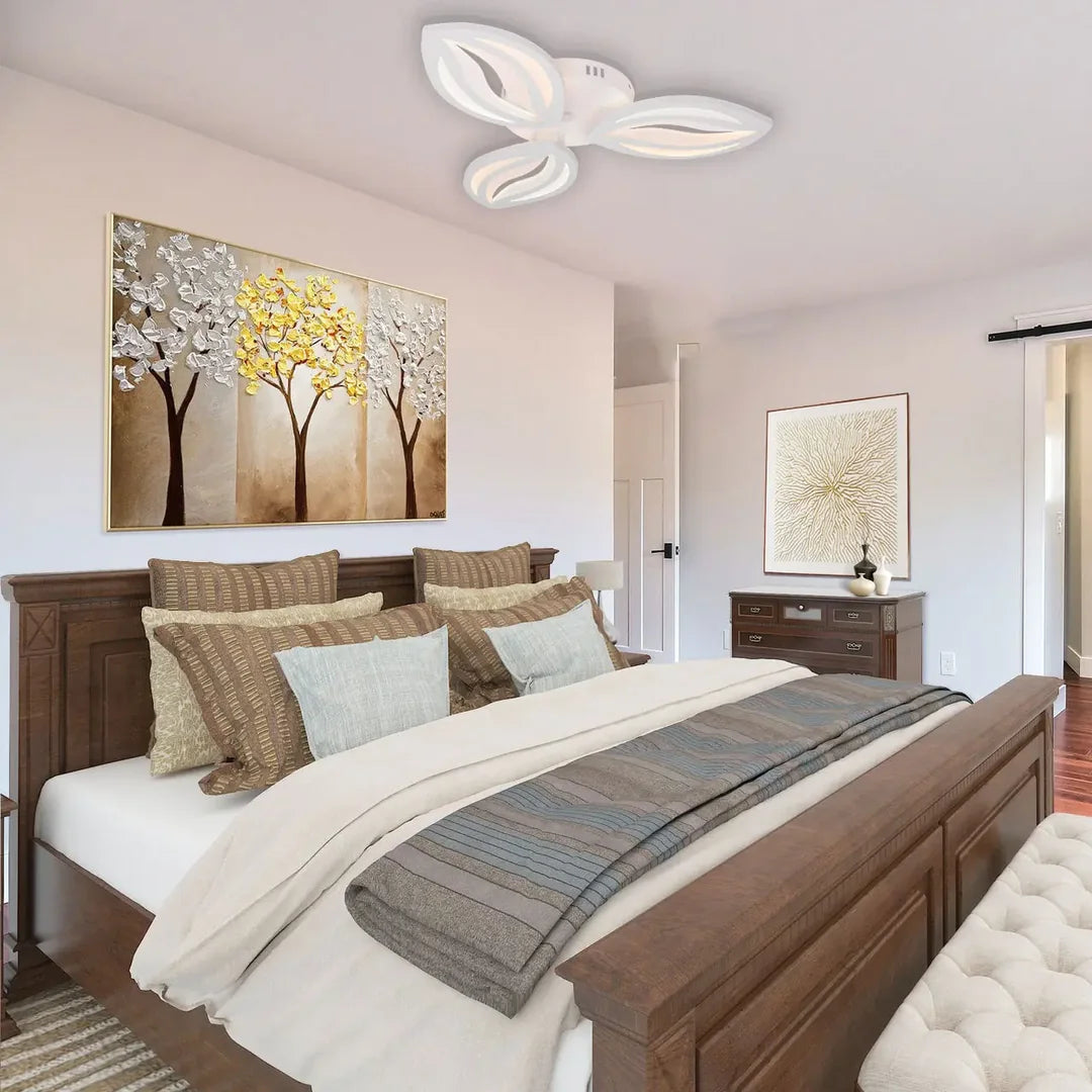 - Motyw kwiatowy: Trzy świetliste „płatki” nadają przestrzeni organiczny i wyrafinowany charakter.