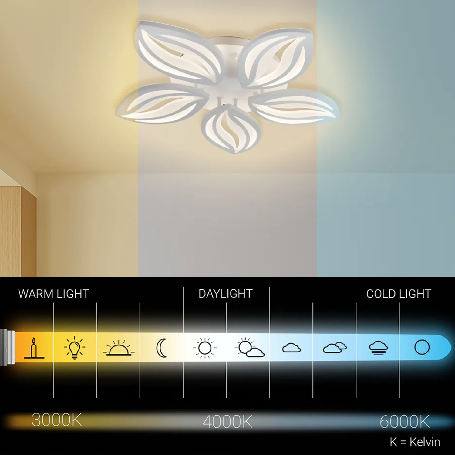 Żyrandol LED ORCHID z pilotem 65W, 5 płatków, światło zimne/ciepłe/neutralne, ściemnialny, biały