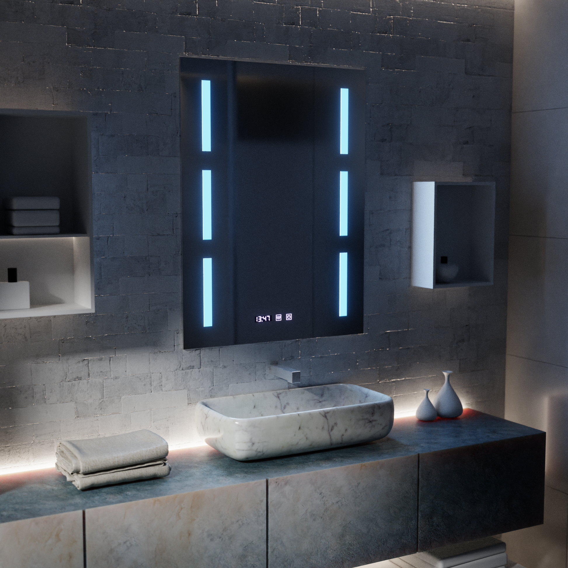 Lustro LED Touch Erich S86/60X80 System odmgławiania, zegar i temperatura 60x80 cm