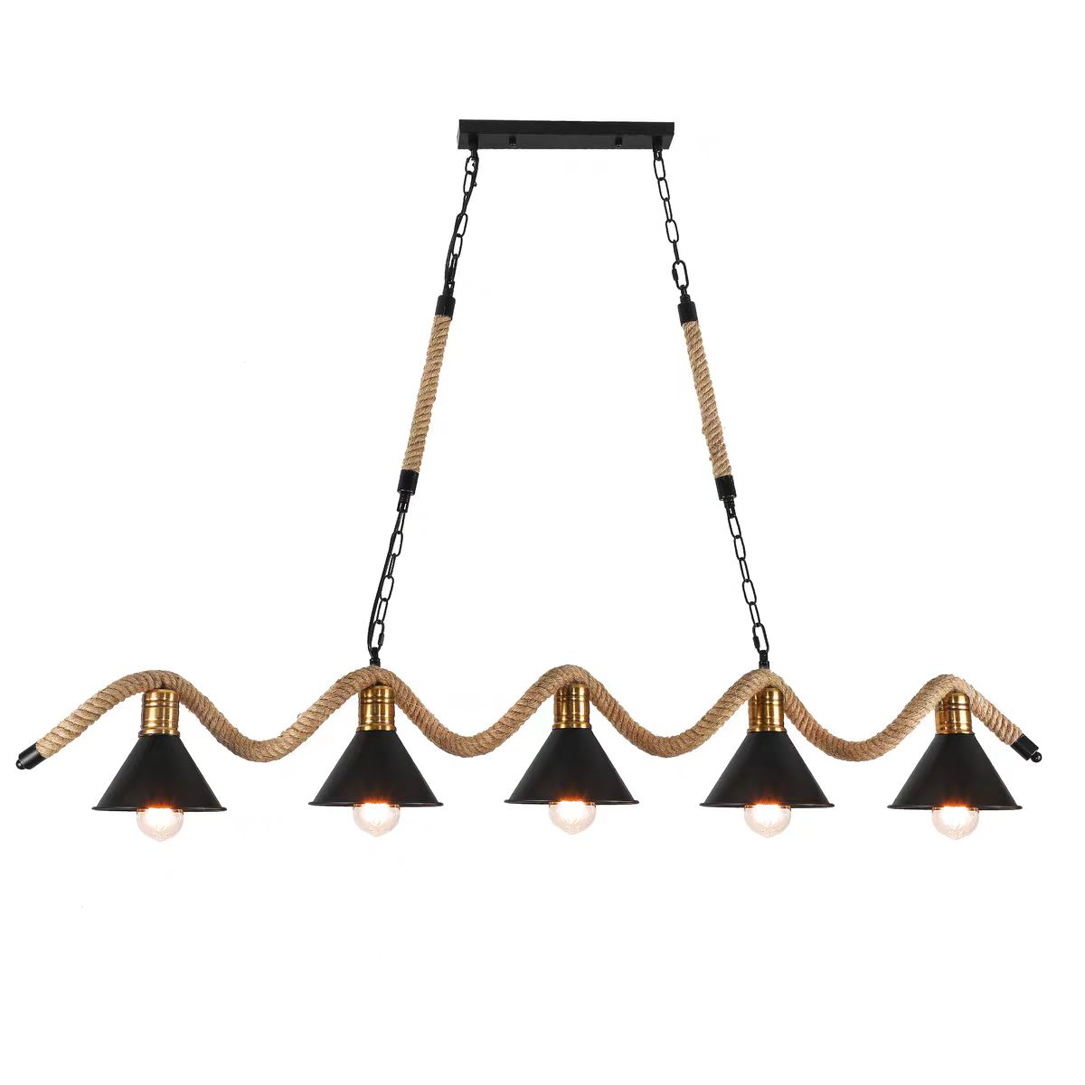 Żyrandol linowy, 5*E27, brązowy, metal i lina