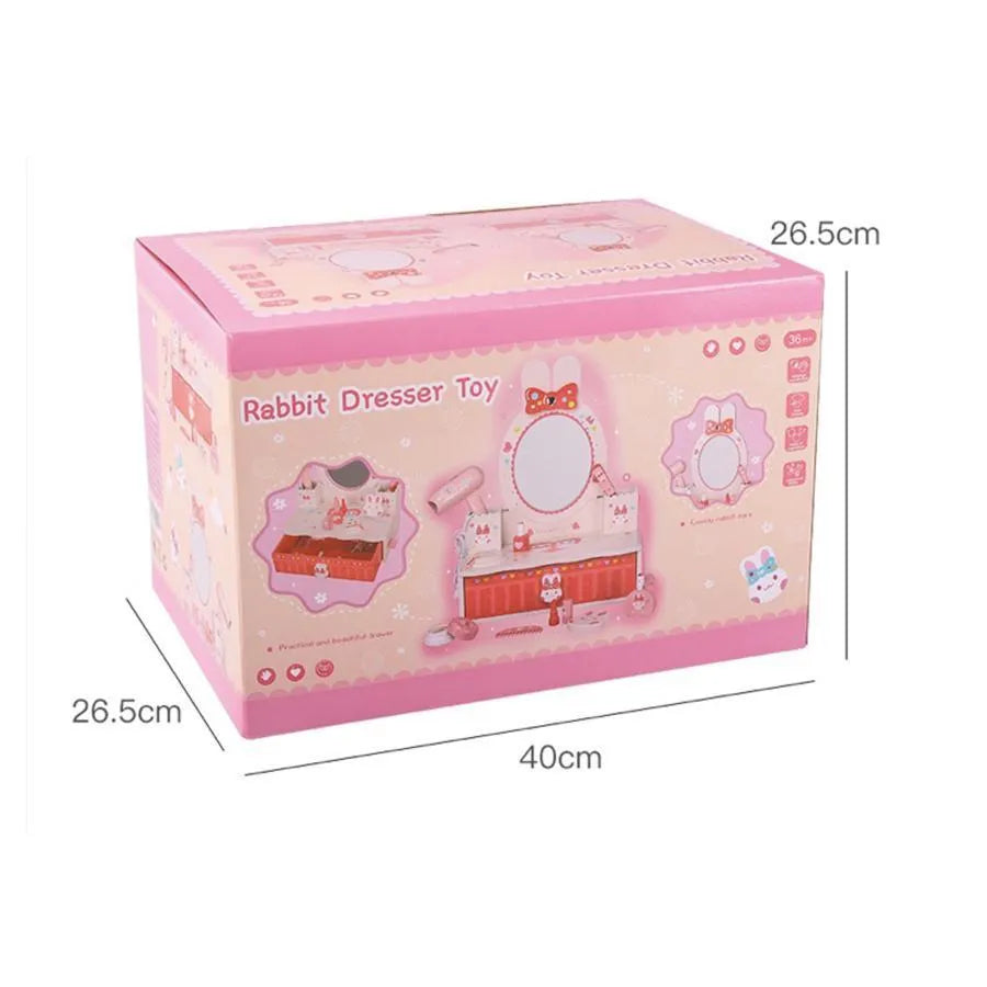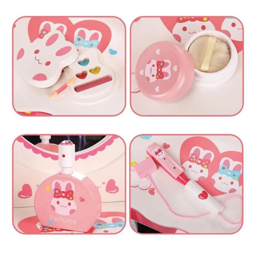 Zabawka stołowa do makijażu i pielęgnacji w kształcie króliczka, 16 elementów, różowa, drewniana