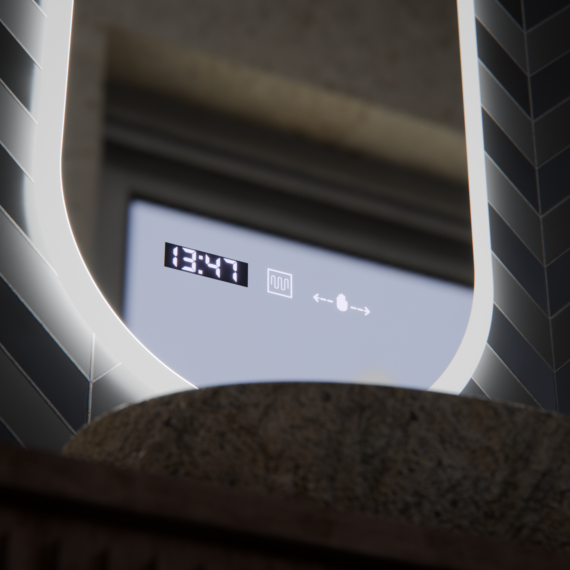 Lustro wyposażone jest w cyfrowy zegar i termometr, dzięki czemu informacje są dyskretnie wyświetlane, nie obciążając wizualnie projektu. Niskie zużycie energii, równomierne światło i wysokiej jakości wykończenia, dają praktyczny, niezawodny i estetyczny produkt, idealny do codziennego użytku w łazience.