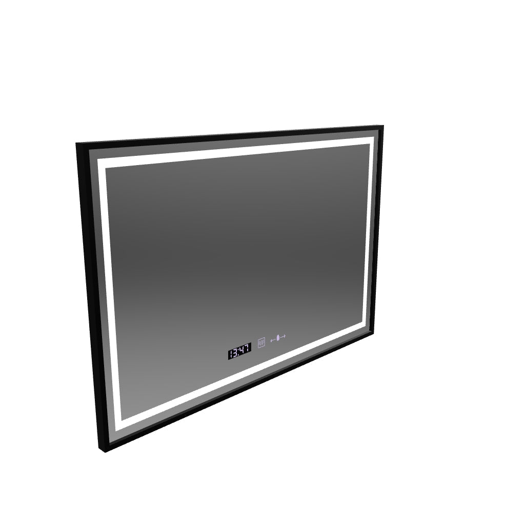 Prostokątne lustro LED, 120x80cm, Verite Majeste Noir Motion Glow Marcello, system przeciwmgielny, zegar i termometr, ściemnialne