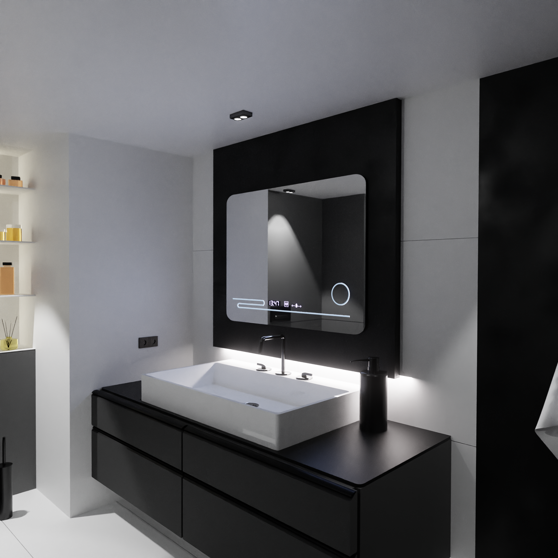 Dodaj odrobinę wyrafinowania i zaawansowanej technologii do swojej łazienki dzięki temu inteligentnemu lustru LED. Dzięki nowoczesnemu wzornictwu, prostokątnemu kształtowi i zintegrowanemu oświetleniu LED, lustro to zamienia codzienny rytuał w luksusowe doznanie.