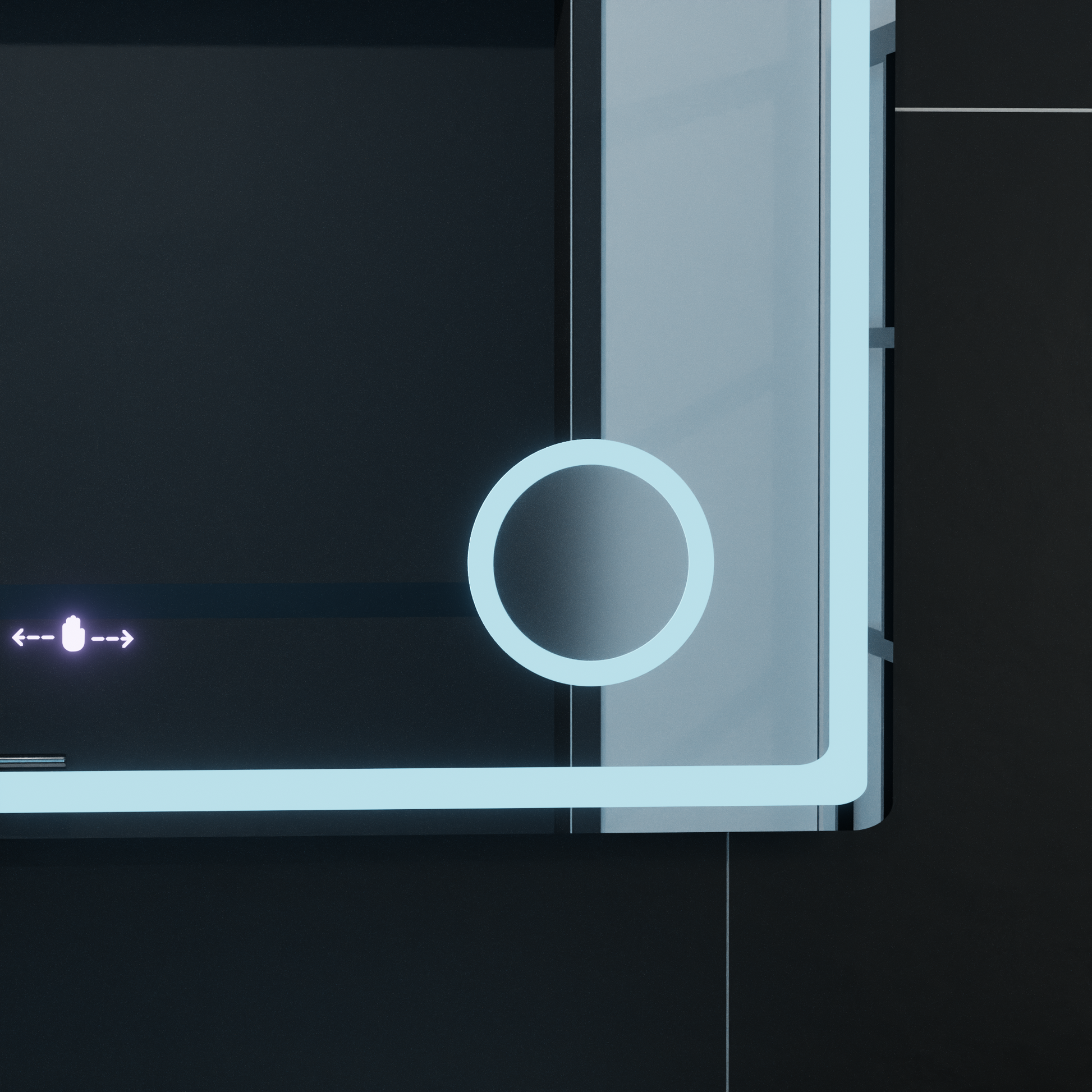 Kontrola dotyk: Współdziała z lustrem w intuicyjny i nowoczesny sposób, poprzez eleganckie elementy dotykowe, dyskretnie zintegrowane na powierzchni lustra.
