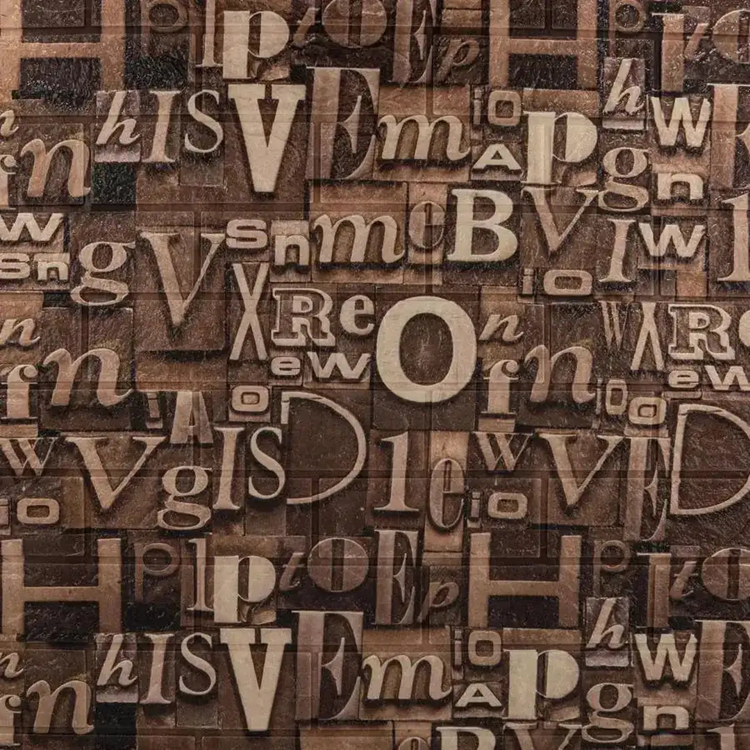 Zestaw 10 samoprzylepnych tapet 3D z miękkiej pianki w kolorze brązowym, 80 cm x 70 cm x 6 mm, wzór jasnobrązowych liter