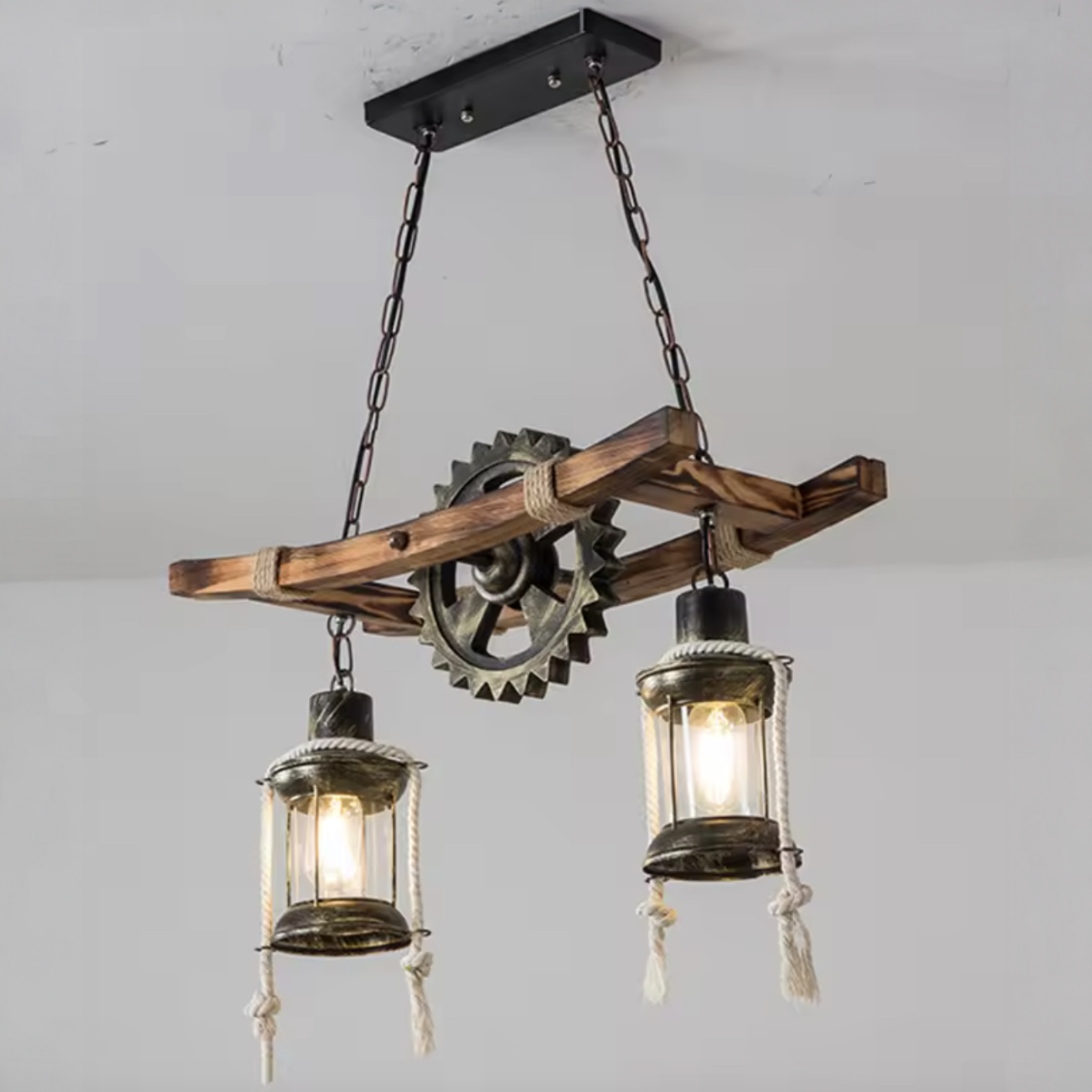 Żyrandol na sznurku vintage PEDRO, 4 x E27 Ciemne drewno