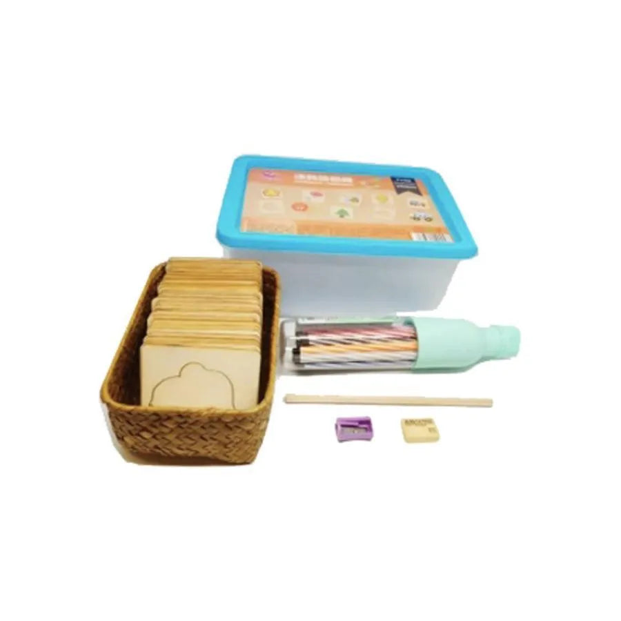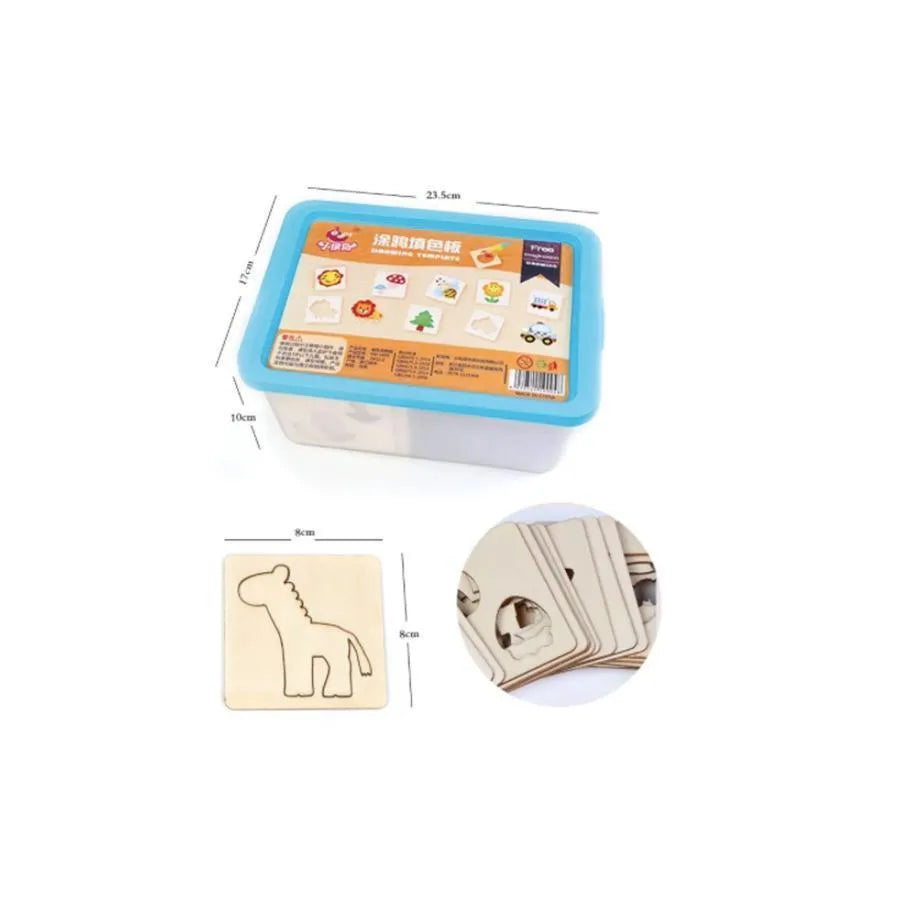 Gra edukacyjna Rysuj po konturze karty, zestaw 10 markerów, 60 kart, drewno i plastik