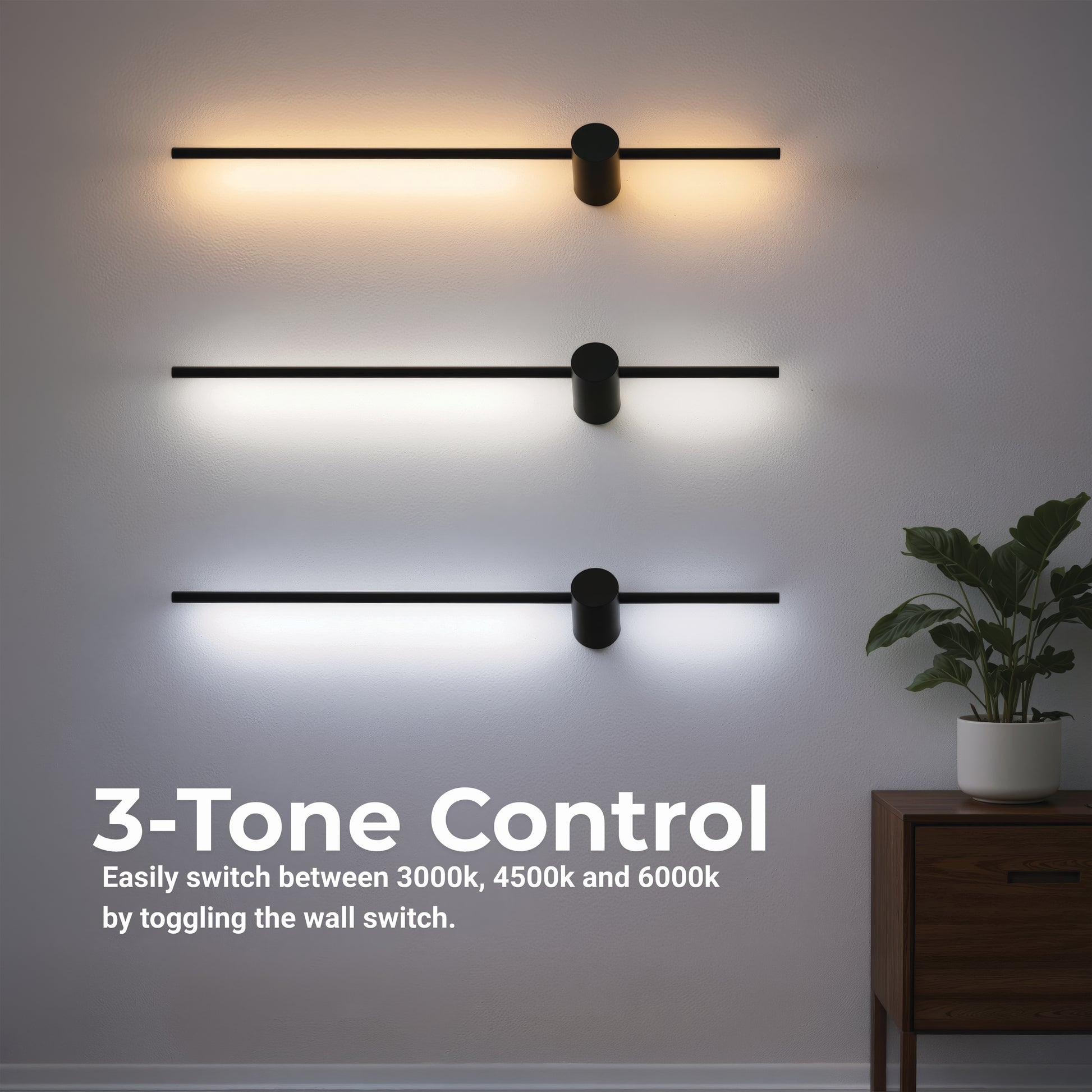 Dzięki mocy 24 W i jasności 1320 lm ta lampa ścienna zapewnia oświetlenie na tyle mocne, że jest w stanie oświetlić całe pomieszczenie, zapewniając przyjemną i komfortową atmosferę. Ponadto opcje 3 rodzajów światła – ciepłego, neutralnego i chłodnego – pozwalają na dostosowanie oświetlenia do własnych preferencji i potrzeb w danej chwili.
