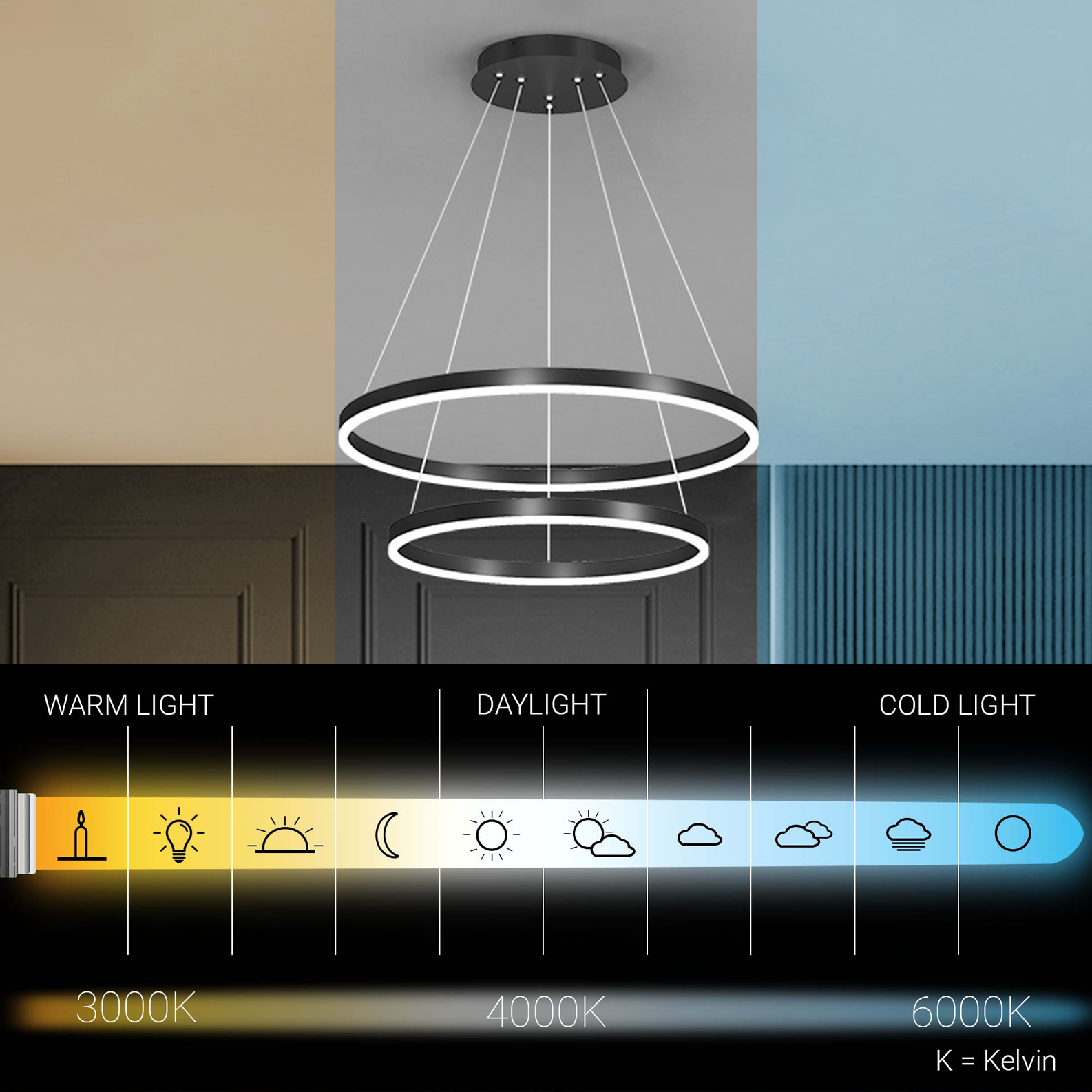 Zawieszany żyrandol LED z pilotem CASIANA 41W, 2 koła, światło zimne/ciepłe/neutralne, możliwość przyciemniania, czarny, regulacja wysokości