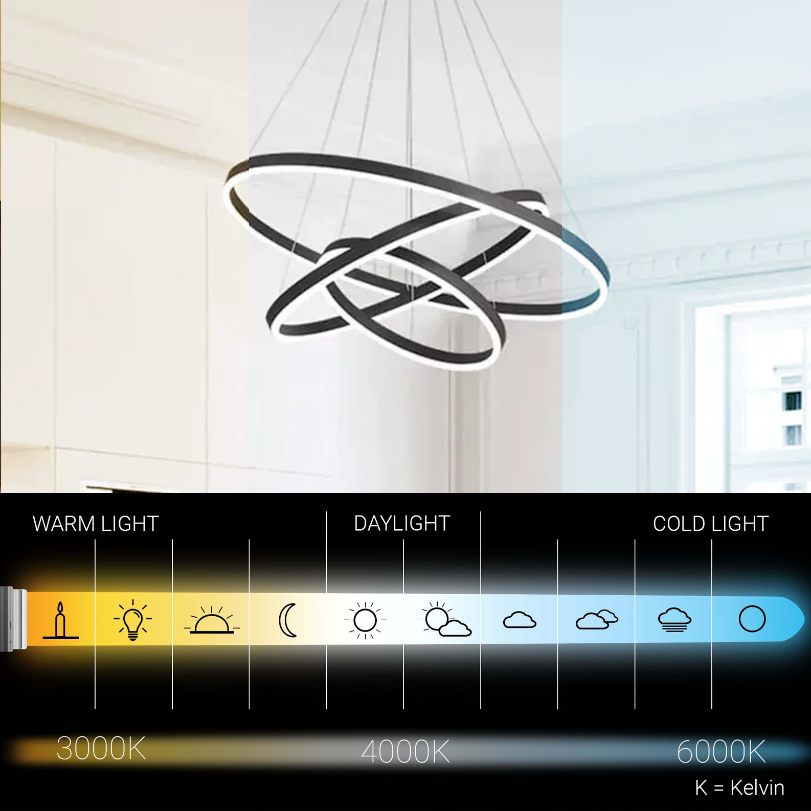 Żyrandol wiszący LED CASIANA 84W z pilotem, 3 okręgi, światło zimne/ciepłe/neutralne, ściemnialny, czarny, regulowana wysokość