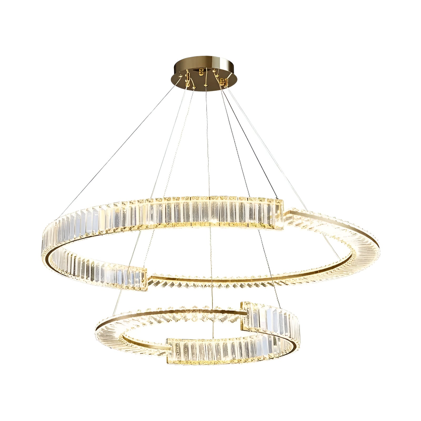 Żyrandol wiszący LED z pilotem i kryształem PRISM REGAL 200 W, 2 okręgi, światło zimne/ciepłe/neutralne, ściemnialny, złoty, regulowana wysokość