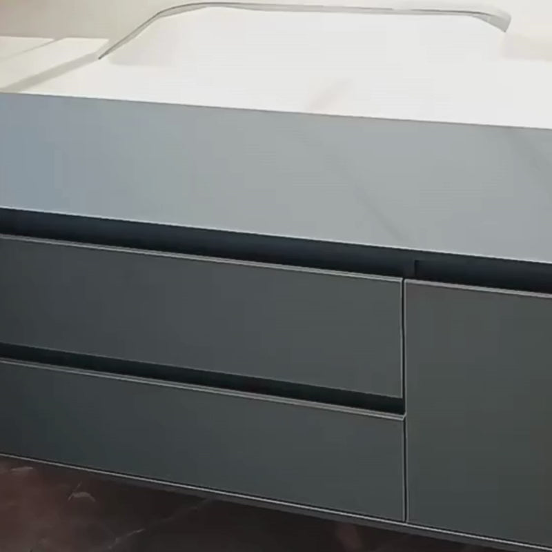 Dolna część korpusu (meble ze zlewem): Podstawowe meble również są podwieszane, co pozwala na łatwe czyszczenie podłogi. Posiada szuflady do przechowywania i integruje zlew bezpośrednio z blatem. Konstrukcja z odlewaną umywalką tworzy ciągłą powierzchnię, bez łączeń, łatwą w utrzymaniu i o nowoczesnym wyglądzie.