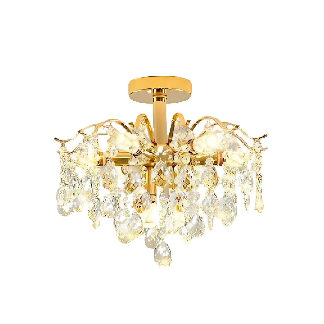 To żyrandol łączący w sobie blask kryształów z elegancją złota, tworząc imponujący punkt centralny w każdym pomieszczeniu.