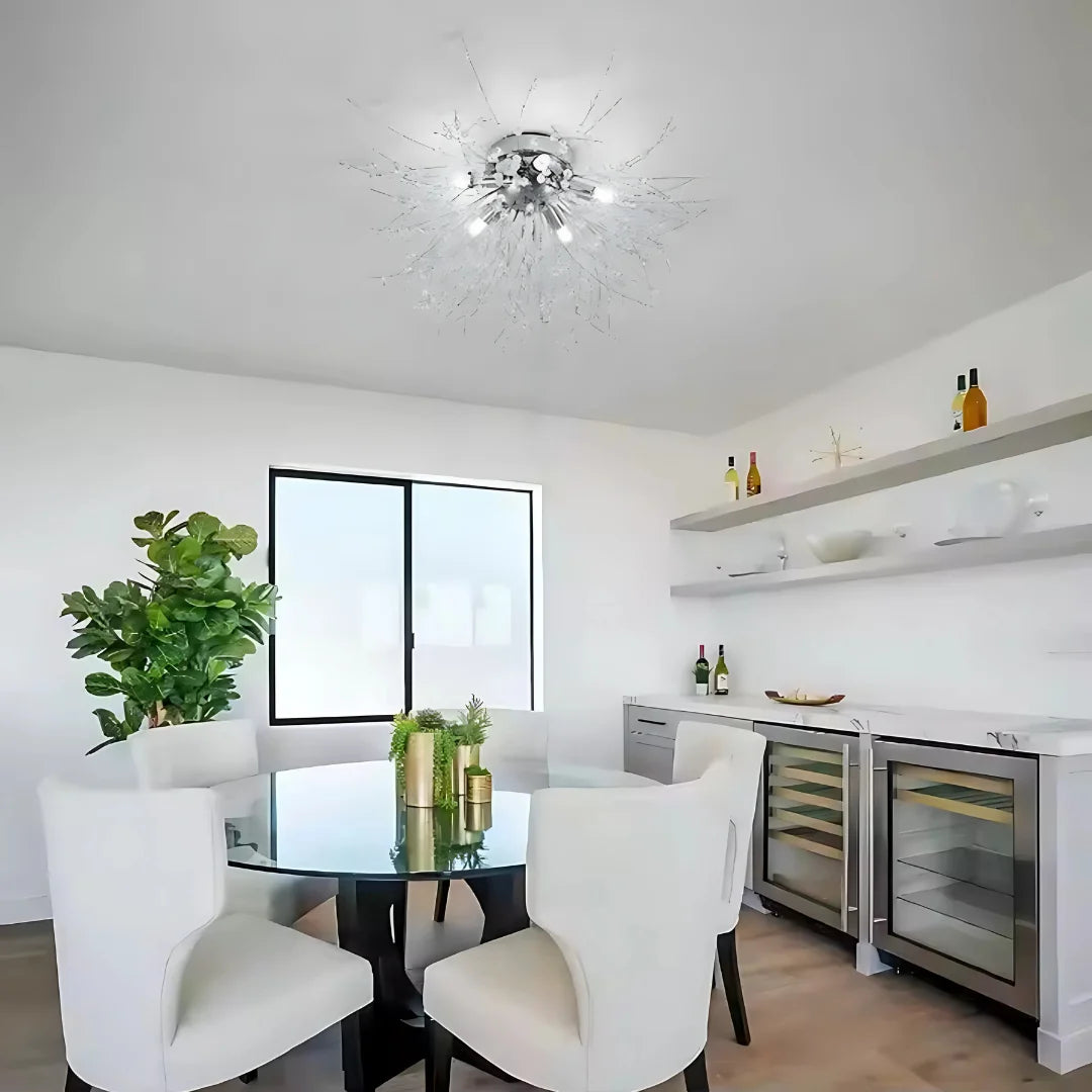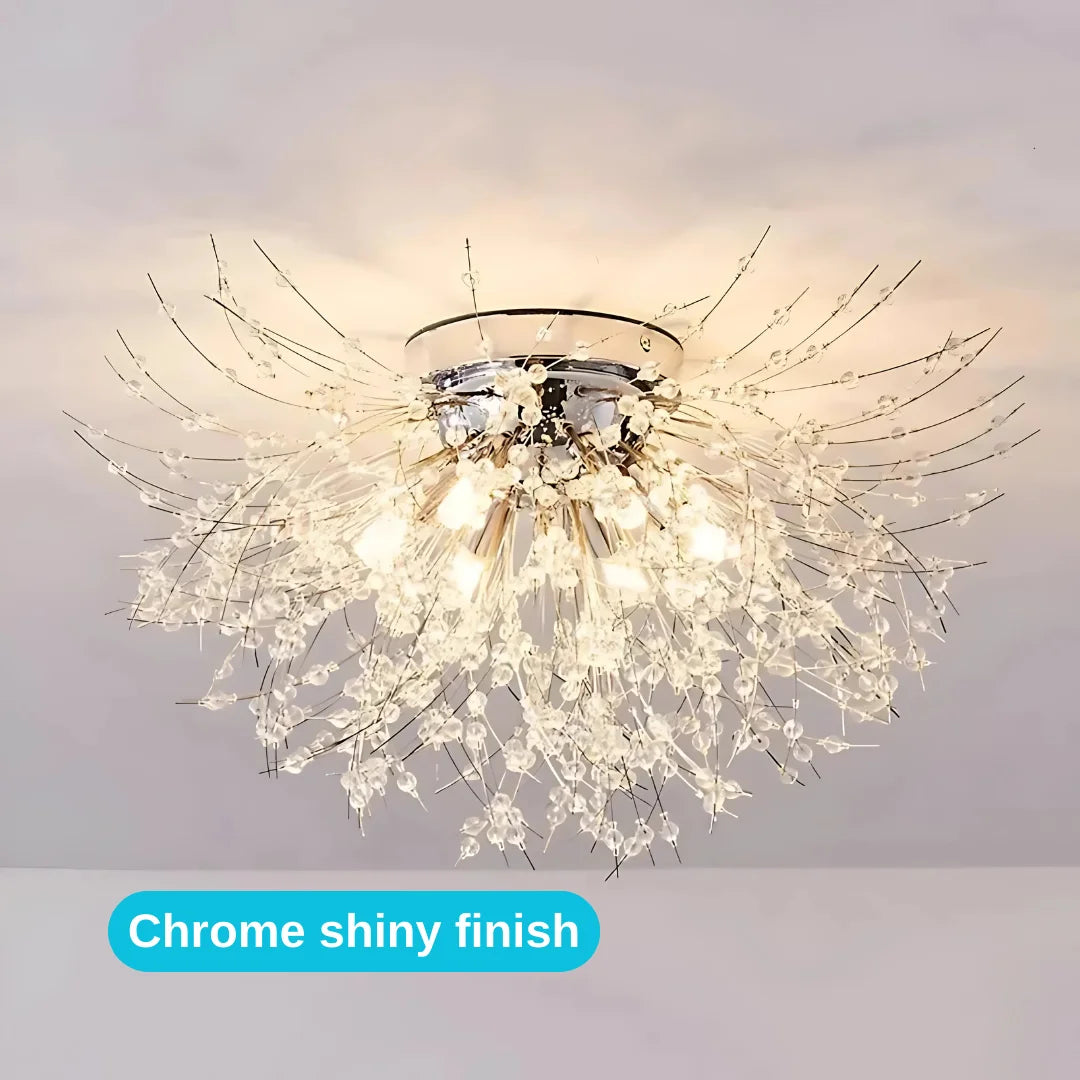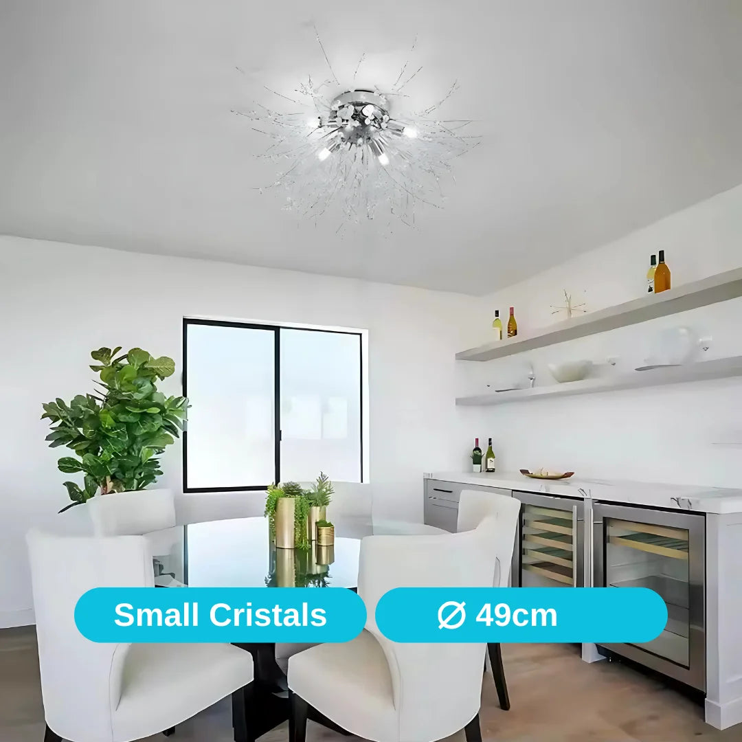 - Błyszczące srebrne wykończenie: Błyszczący srebrny kolor metalowej konstrukcji dodaje odrobinę nowoczesności i elegancji, odbijając światło i wzmacniając połysk kryształów.