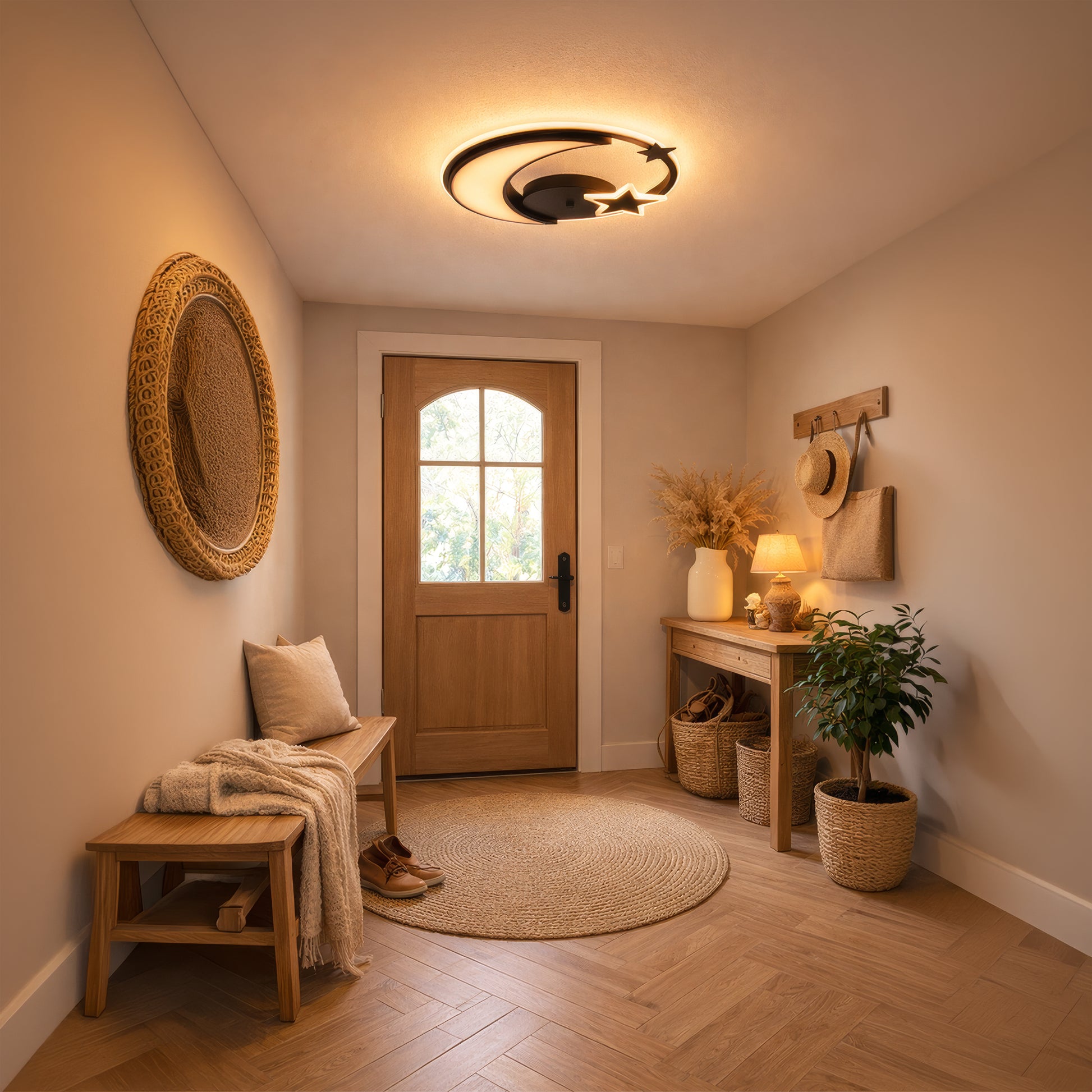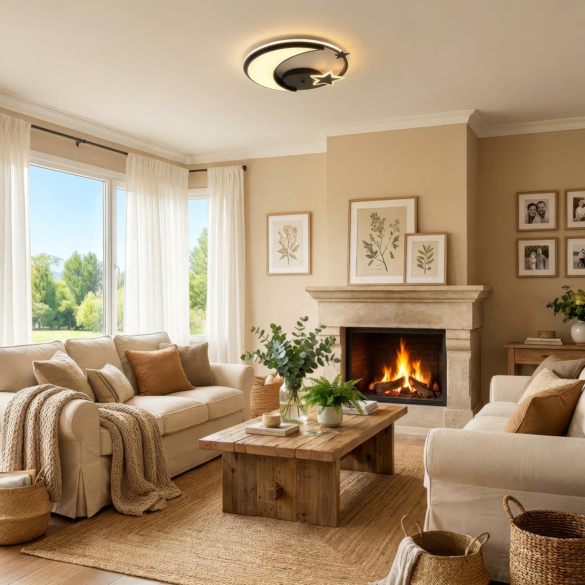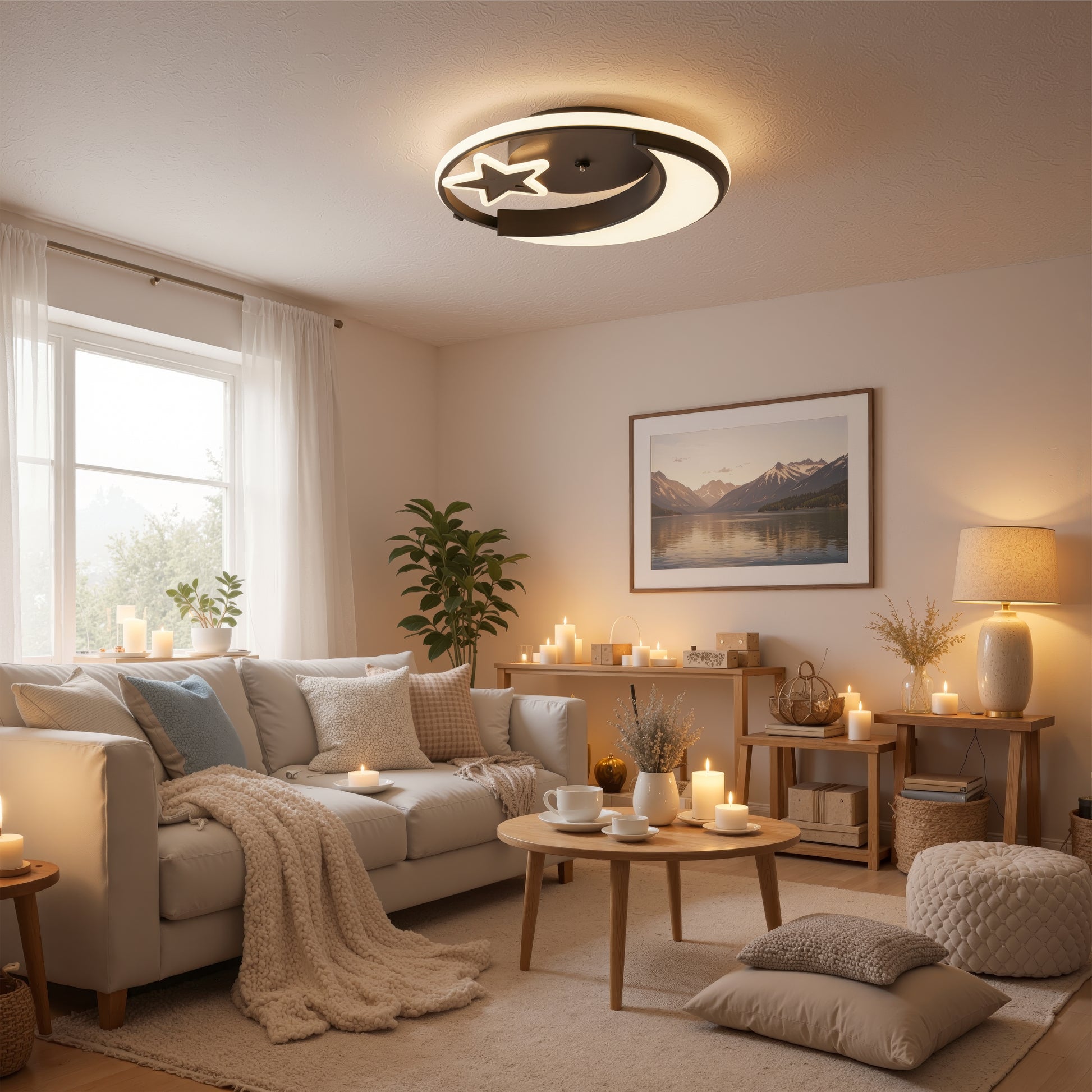Żyrandol LED z pilotem ALYONA 44W, Księżyc i Gwiazda, Światło zimne/ciepłe/neutralne, Ściemnialny, Czarny