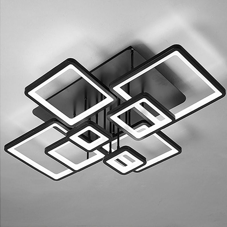 Czarne wykończenie żyrandola podkreśla nowoczesne linie kwadratowego projektu i dodaje pomieszczeniu elegancji i wyrafinowania. Rozmiar 8 kwadratów sugeruje znaczącą obecność, idealny do dużych salonów, jadalni, a nawet nowoczesnych przestrzeni komercyjnych.