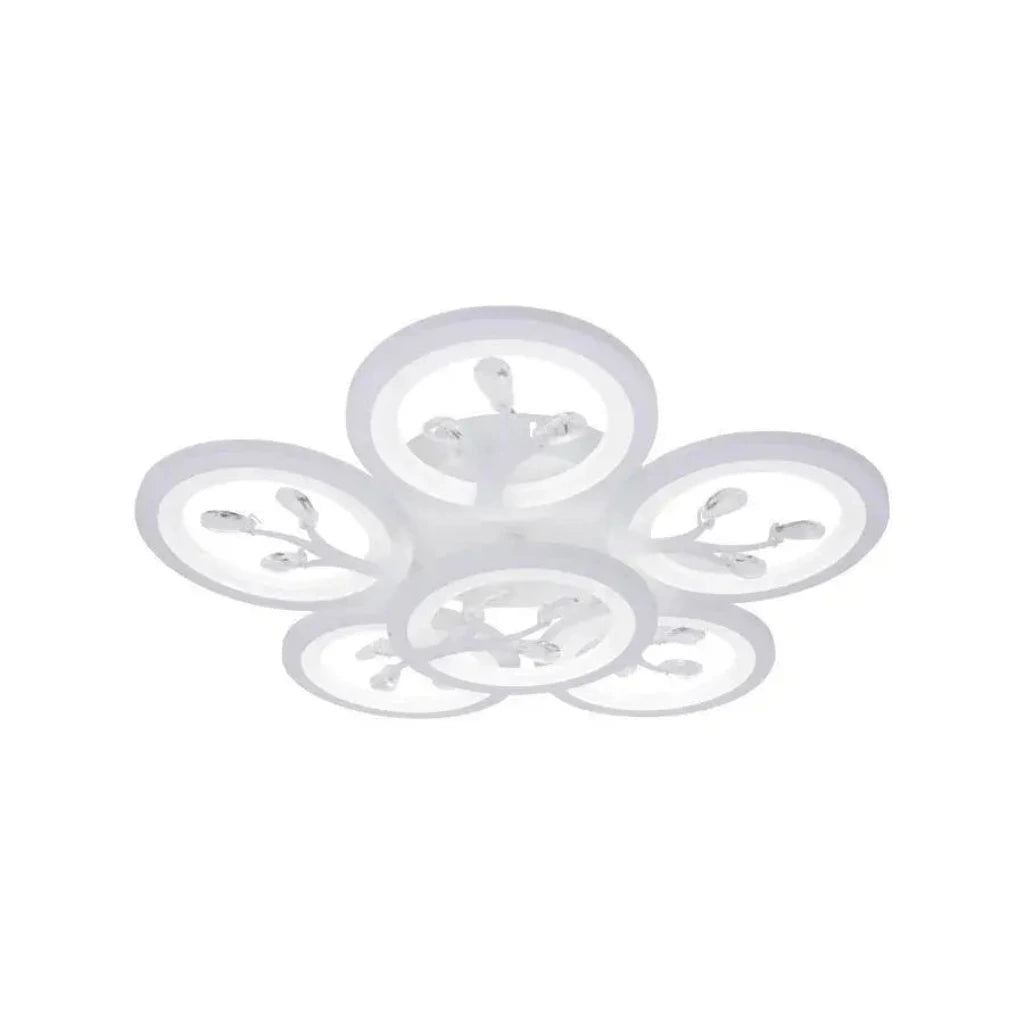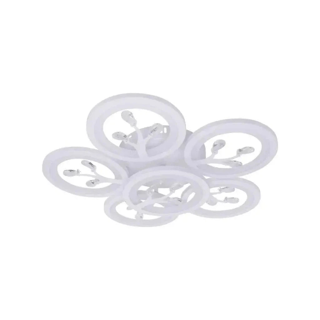 Żyrandol LED DAISY z pilotem i kryształami to elegancki i nowoczesny element oświetleniowy, którego design obejmuje 6 białych elementów ozdobionych lśniącymi kryształami. Dzięki mocy 72 W oferuje wszechstronne oświetlenie i dodaje wnętrzu odrobinę elegancji.