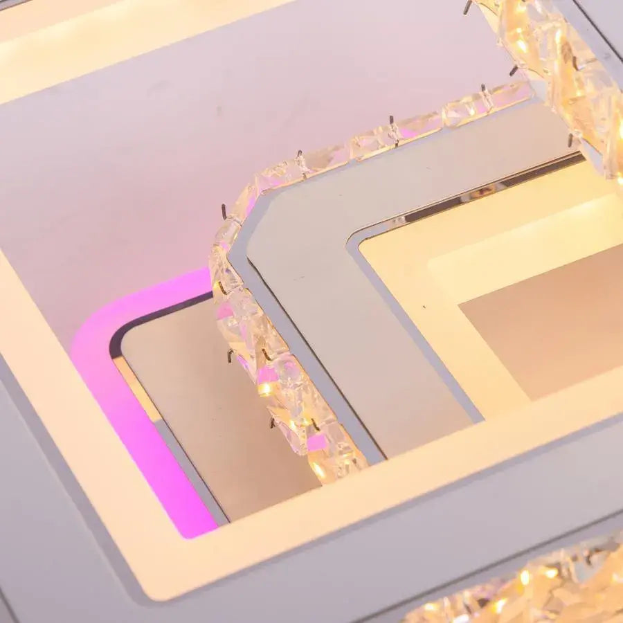 Żyrandol LED z pilotem i kryształem LEILA 154W, 3 kwadraty, zimne/ciepłe/neutralne światło, ściemnialny, błyszczący chrom biały