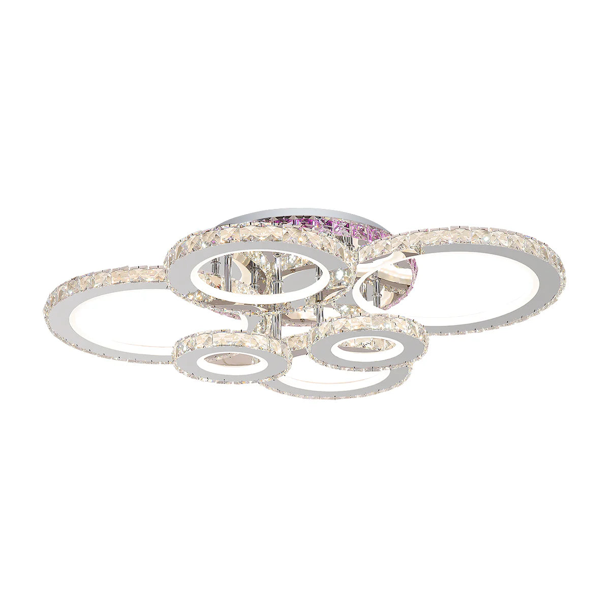 Żyrandol LED z pilotem i kryształem NOVA ROTONDA RGB 152W, 6 okręgów, zimne/ciepłe/neutralne światło, ściemnialny, błyszczący chrom