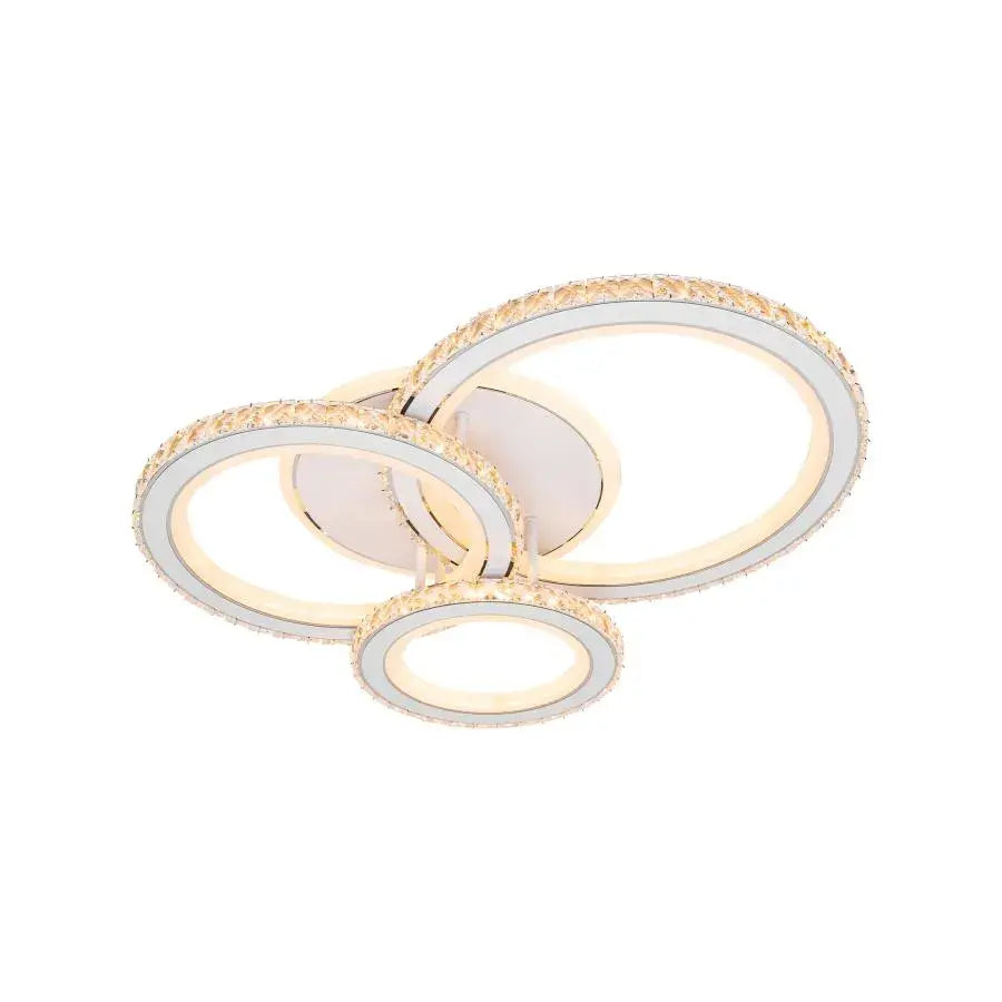 Żyrandol LED z pilotem i kryształem NOVA ROTONDA RGB 154W, 3 okręgi, światło zimne/ciepłe/neutralne, ściemnialny, biały