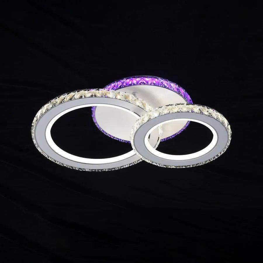 Żyrandol LED z pilotem i kryształem NOVA ROTONDA RGB 43W, 2 okręgi, światło zimne/ciepłe/neutralne, ściemnialny, biały