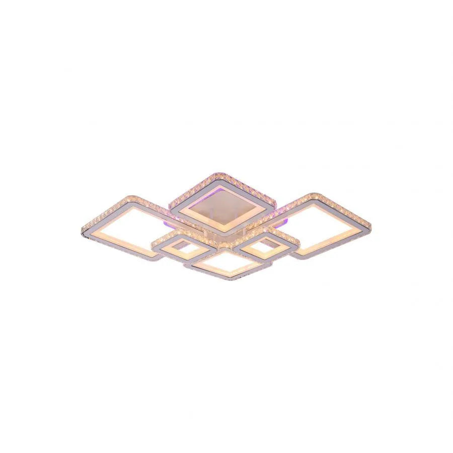 Żyrandol LED z pilotem i kryształem QUADRIS RGB 170 W, 6 kwadratów, światło zimne/ciepłe/neutralne, ściemnialny, biały