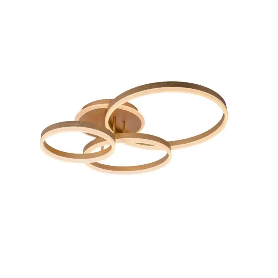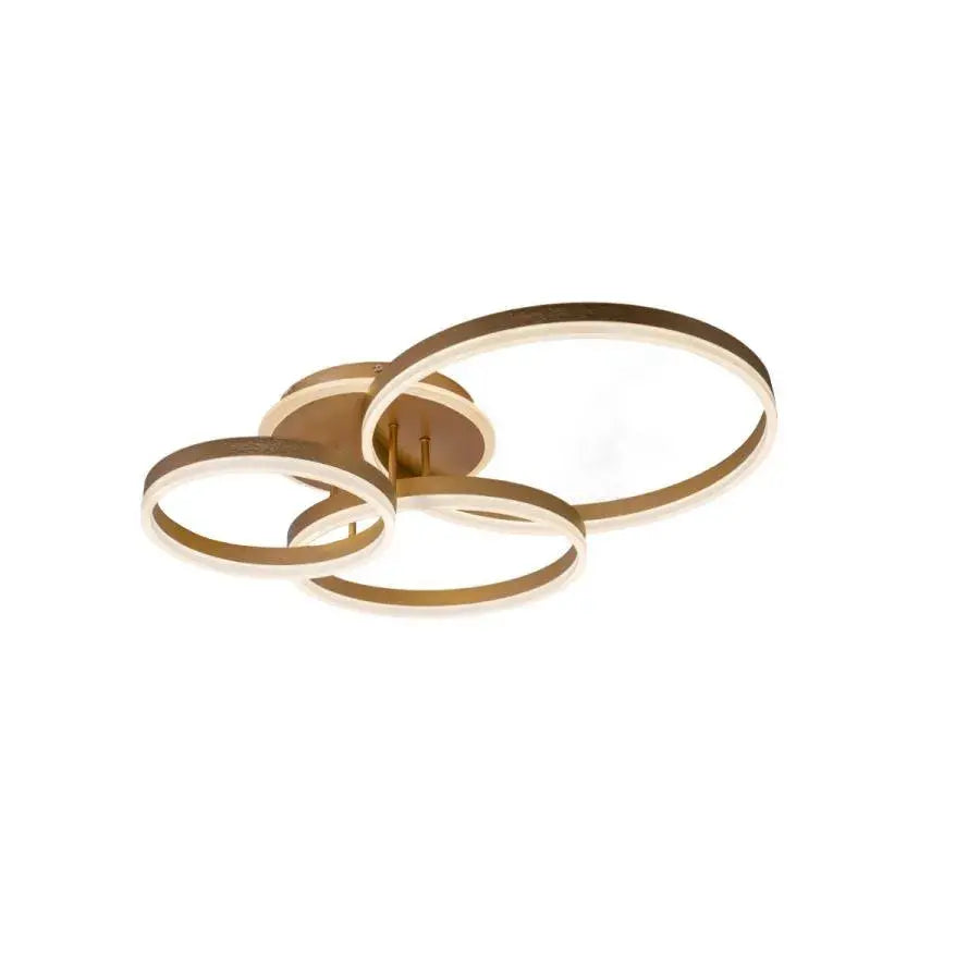 Żyrandol LED z pilotem LYRA 100 W, 3 okręgi, światło zimne/ciepłe/neutralne, ściemnialny, szczotkowane złoto