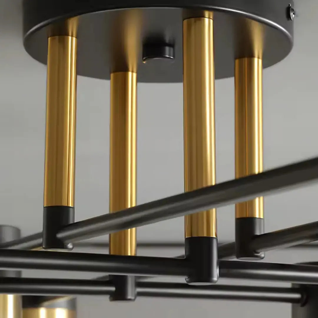 - Współczesny design i trwałe materiały: żyrandol MARIO o liniowym kształcie i wyrafinowanym połączeniu czerni i złota, wykonany z metalu i akrylu , z 8 źródłami światła staje się charakterystycznym punktem centralnym, doskonale komponując się z nowoczesnym wystrojem.
