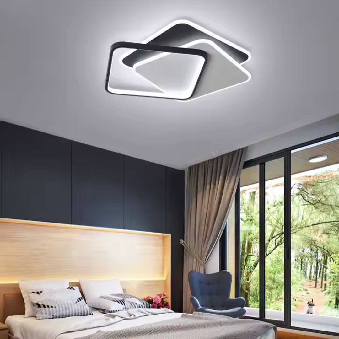 Zapal swoją przestrzeń elegancją i nowoczesnością z LED Oblico Chandelier. Ta charakterystyczna lampa sufitowa przedstawia współczesny projekt, złożony z trzech kwadratów nakładających się w sposób ukośny, tworząc dynamiczny i atrakcyjny efekt wizualny. Matowe czarne wykończenie daje wyrafinowane powietrze i idealnie integruje się z różnymi stylami wewnętrznymi, od minimalistycznego po nowoczesne.