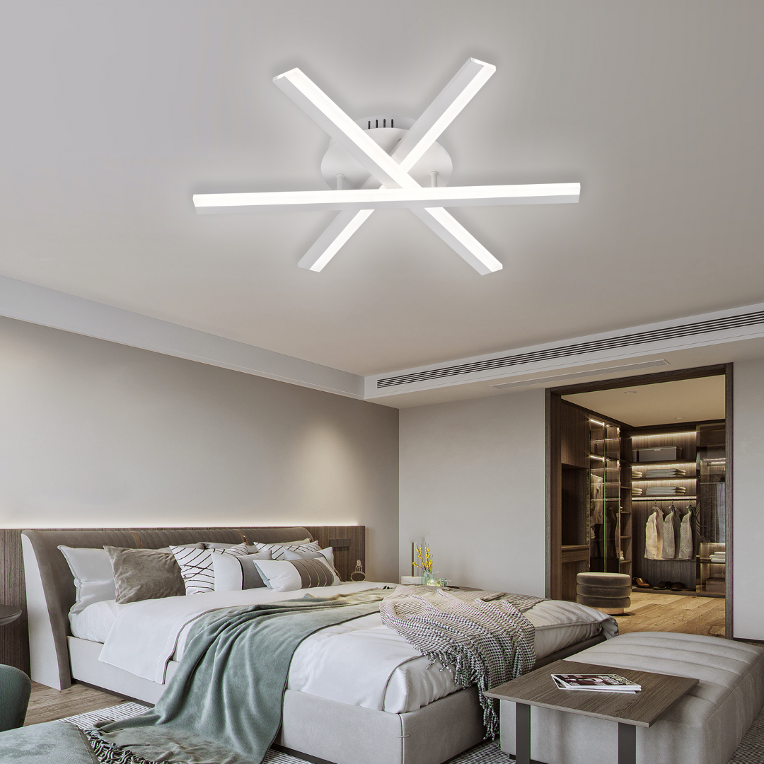 Żyrandol LED ZOE z pilotem ma moc 40 W i strumień świetlny 3200 lm , oferując ściemnialne oświetlenie w trzech temperaturach barwowych: 3000 K, 4000 K, 6000 K (ciepła, neutralna, zimna). Działa pod napięciem 220–230 V , ma autonomię do 25 000 godzin i jest sterowany za pomocą pilota lub klasycznego przełącznika . Nowoczesny design, o liniowym kształcie, wykonany z metalu i akrylu , w białym wykończeniu. Ma wymiary 60 cm długości , 60 cm szerokości i 10 cm wysokości , z możliwością montażu sufitowego . Stopień ochrony IP20 , zasilanie sieciowe . Polecany do sypialni, salonu lub przedpokoju .
