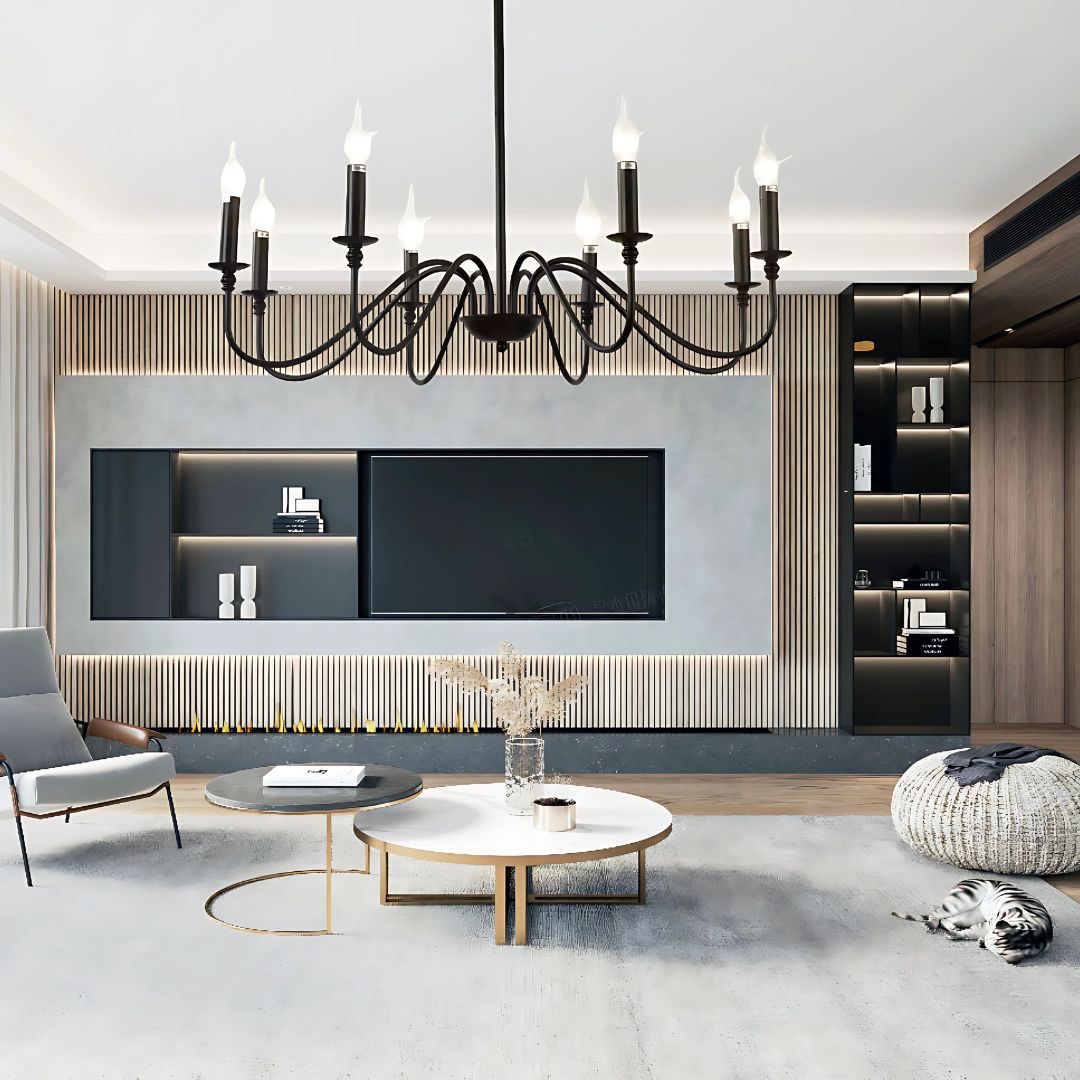 Jego główną zaletą jest funkcjonalność na dużą skalę. The 8 ramion rozprowadza światło w sposób rozciągnięty i równomierny, zapewniając pełne doświetlenie pomieszczenia. Ta zdolność do dostarczenia znacznej ilości światła czyni go niezwykle praktycznym, eliminując potrzebę stosowania dodatkowych źródeł oświetlenia otoczenia.