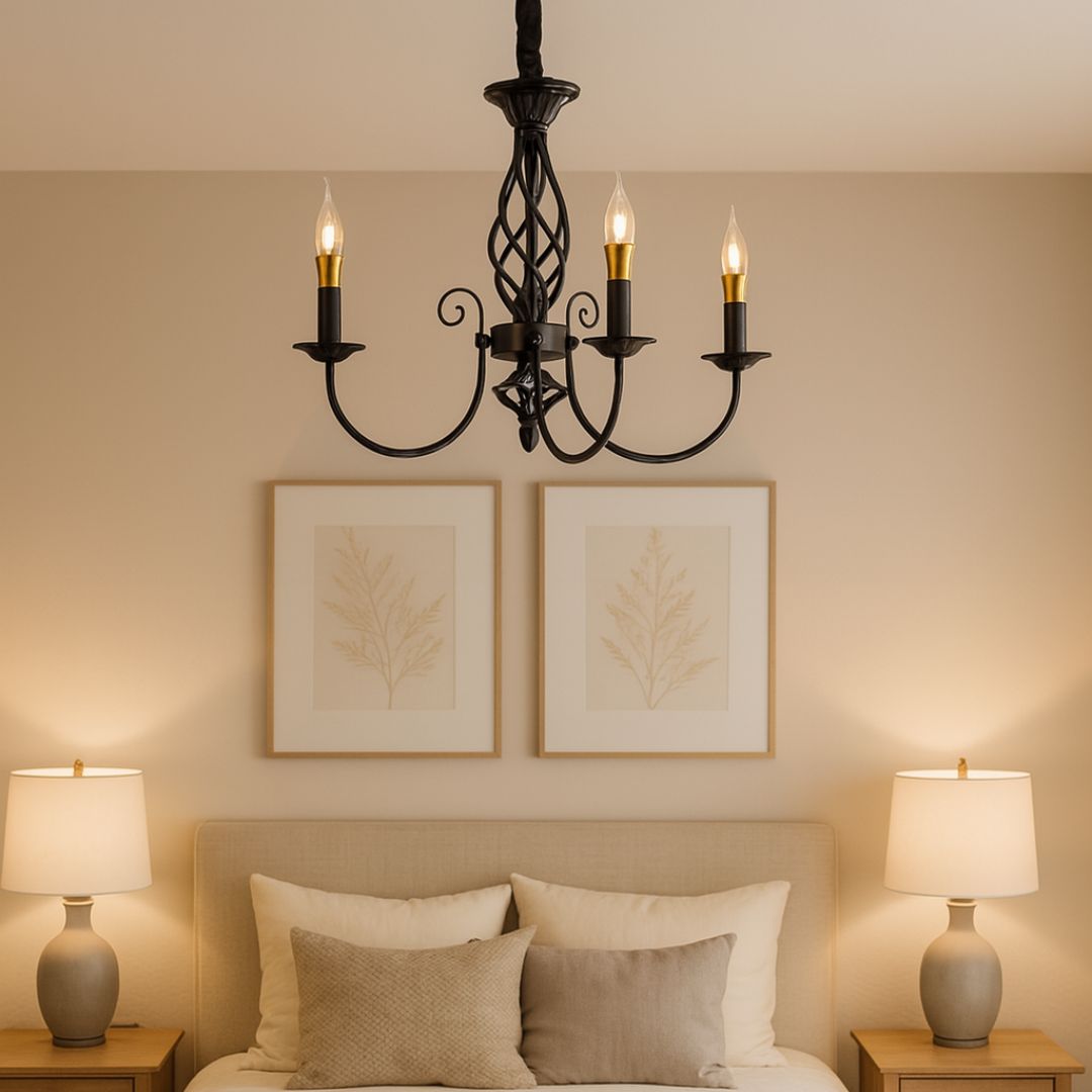 - 🖼️ Zastosowane żyrandole - Naprawiono bezpośrednio do sufitu, nie dopuszczaj regulacji wysokości.