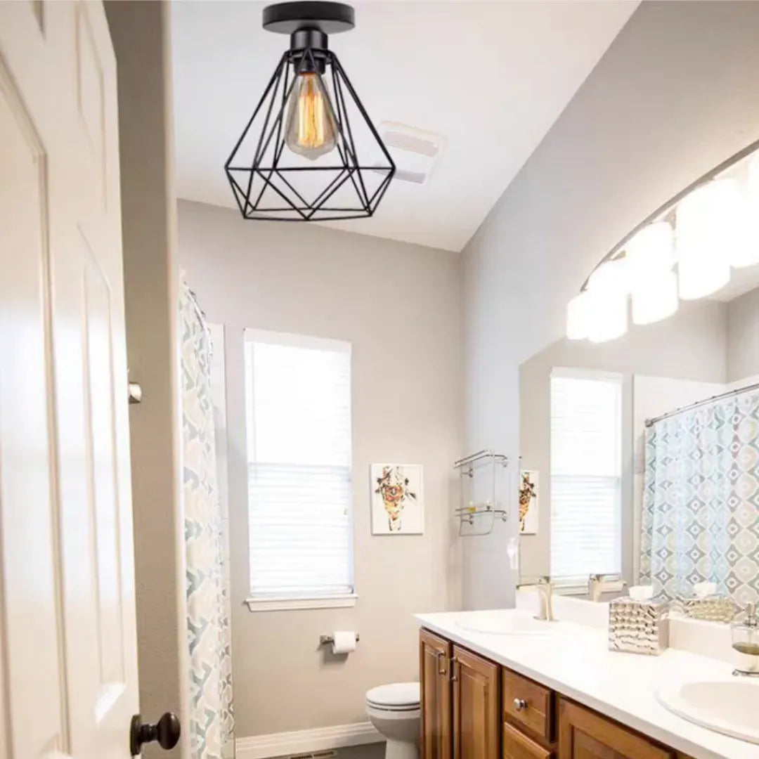 Żyrandol GRACIE w kształcie diamentu, z mocowaniem na stałe do sufitu, idealnie nadaje się do małych pomieszczeń, takich jak korytarze, łazienki czy garderoby. Działa z pojedynczą żarówką E27 (brak w zestawie), zapewniając oświetlenie punktowe, idealne do pomieszczeń przejściowych lub pomieszczeń pomocniczych.